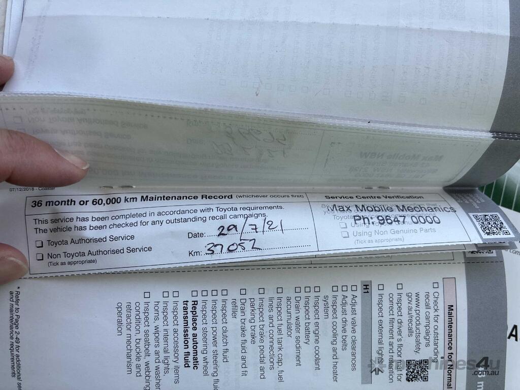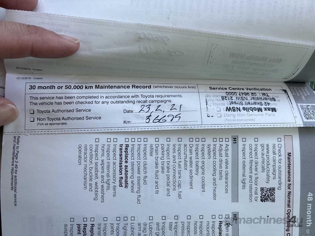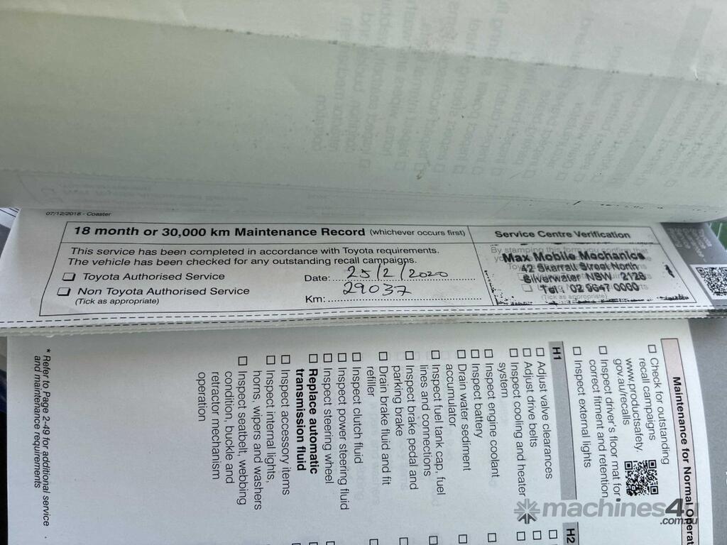 CP: 01/2019,Built: 12/2018,Toyota,Coaster Deluxe,Bus,Automatic,Spring,Engine #: N04CUH22470,N04C-UH,4010 CC,4 Cyl,Diesel Turbo,132089 (Kms. Showing on Odometer),Hourmeter not visible,Colour: White,Rego. No: NP(CS38AF), Unregistered NSW,VIN: JTGFP01,Key No: 167,Length: 7 m,GVM: 5540,GCM: 6940,Sold with No Plates,Key No: 167
