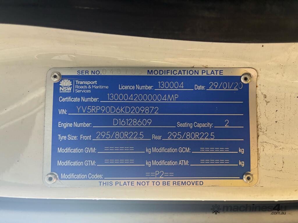 CP: 08/2019,Volvo,FH Series 4,Prime Mover Sleeper Cab,Automatic,Airbag,6 Cyl,Diesel,387355 (Kms. Showing on Odometer),6959 (Hrs. Showing on Hour meter),Colour: White,Unregistered,VIN: YV5RP90D6KD209872,Key No: 275,GVM: 28500,GCM: 70000,Sold with No Plates,WOVR Status: Inspection Passed Repairable Writeoff,Incident Type: Impact,Key No: 275