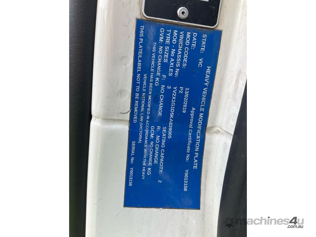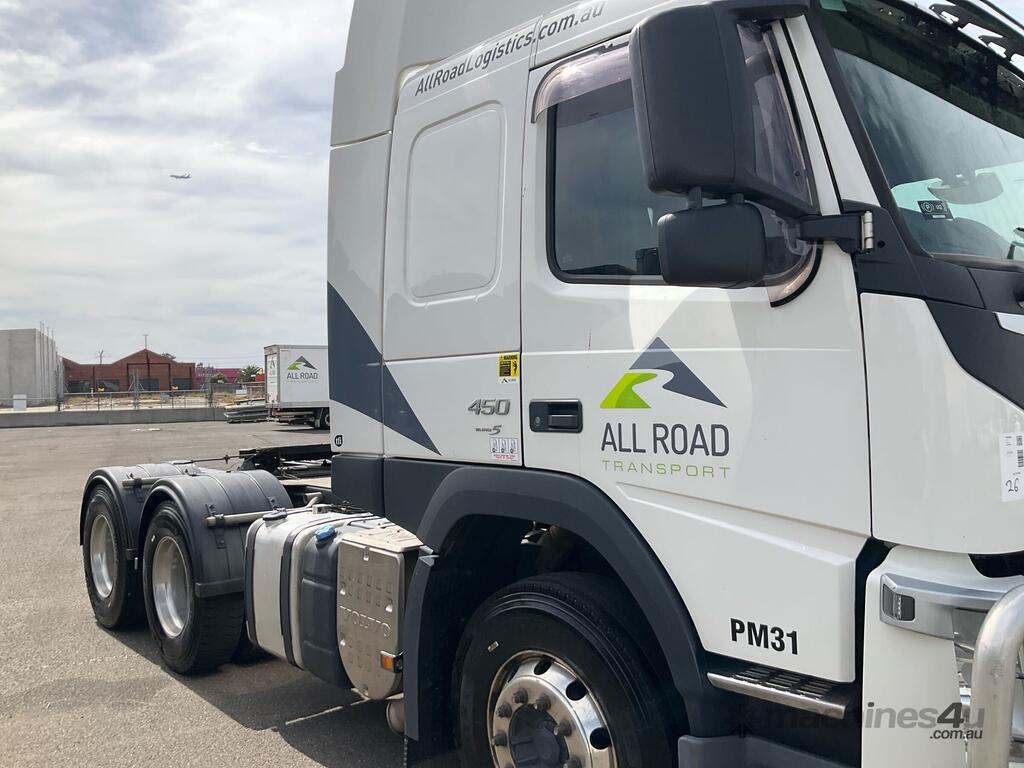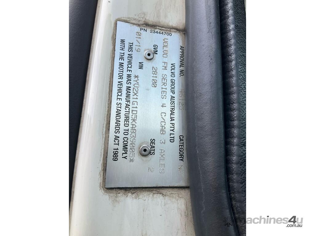 CP: 01/2019,Volvo,FM 450,Prime Mover,Automatic,Air Bag Suspension,Engine #: D11460156C2L,6 Cyl,Diesel,700939 (Kms. Showing on Odometer),17754 (Hrs. Showing on Hour meter),Colour: White,Rego. No: NP(XV27DR), Unregistered,VIN: YV2X1G1D5KA839005,Key No: 26,GVM: 28100,GCM: 60000,Sold with No Plates,Key No: 26