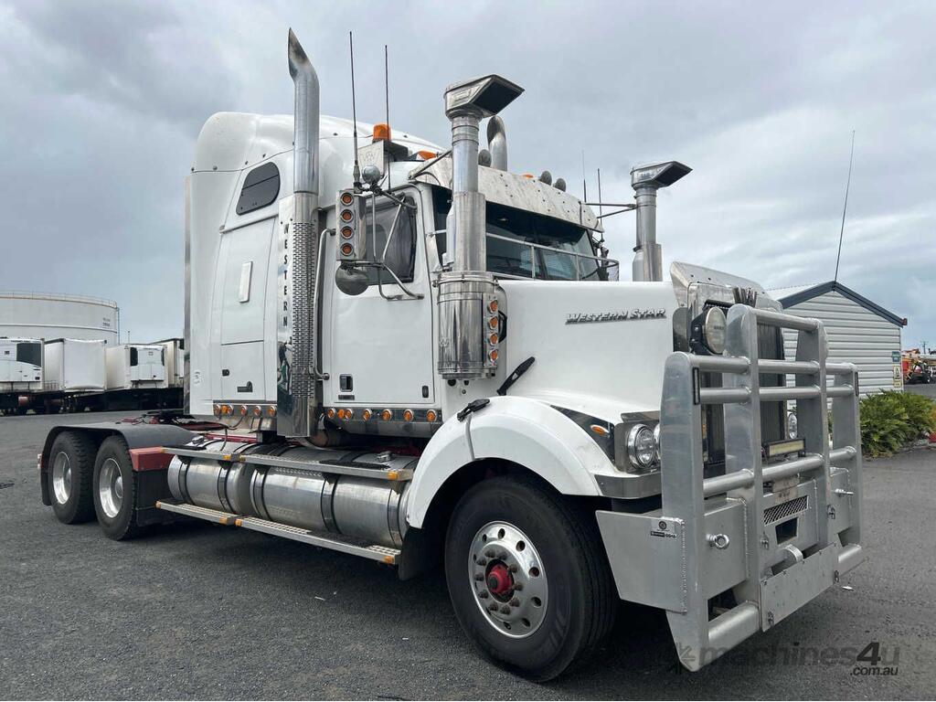 CP: 02/2019,Western Star,4964,Prime Mover,Manual,Airbag,6 Cyl,Diesel,18 Gears,764202 (Kms. Showing on Odometer),14703 (Hrs. Showing on Hour meter),Colour: White,Rego. No: XQ26CS,VIN: 5KKJBEDR8KPKL4738,Length: 8300 undefined,GVM: 27300,GCM: 85000,Sold with No Plates