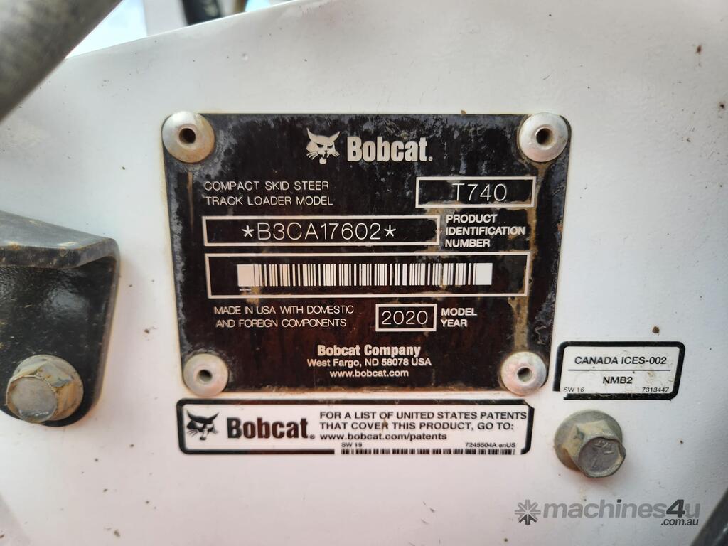 USED 2020 BOBCAT T740 TRACK LOADER (T460) WITH LOW 1325 HRS IN GOOD CONDITION WITH AUXILIARY HYDRAULICS, RIDE CONTROL, WIDE SERIES RUBBER TRACKS, 4 IN 1 BUCKET, 74HP TURBO DIESEL, VERTICAL LIFT LOADER ARMS, FULL A/C PRESSURISED CABIN WITH ROPS, HYDRAULIC QUICK HITCH, PREMIUM CAB OPTIONS, 2 SPEED TRAVEL, REAR VIEW CAMERA, WORK LIGHTS, BT RADIO, UHF RADIO, BATTERY ISOLATOR, E-STOPS, JOYSTICK CONTROLS, 4594KG OPERATING WEIGHT, 4147KG TIPPING LOAD AND RISK ASSESSMENT.