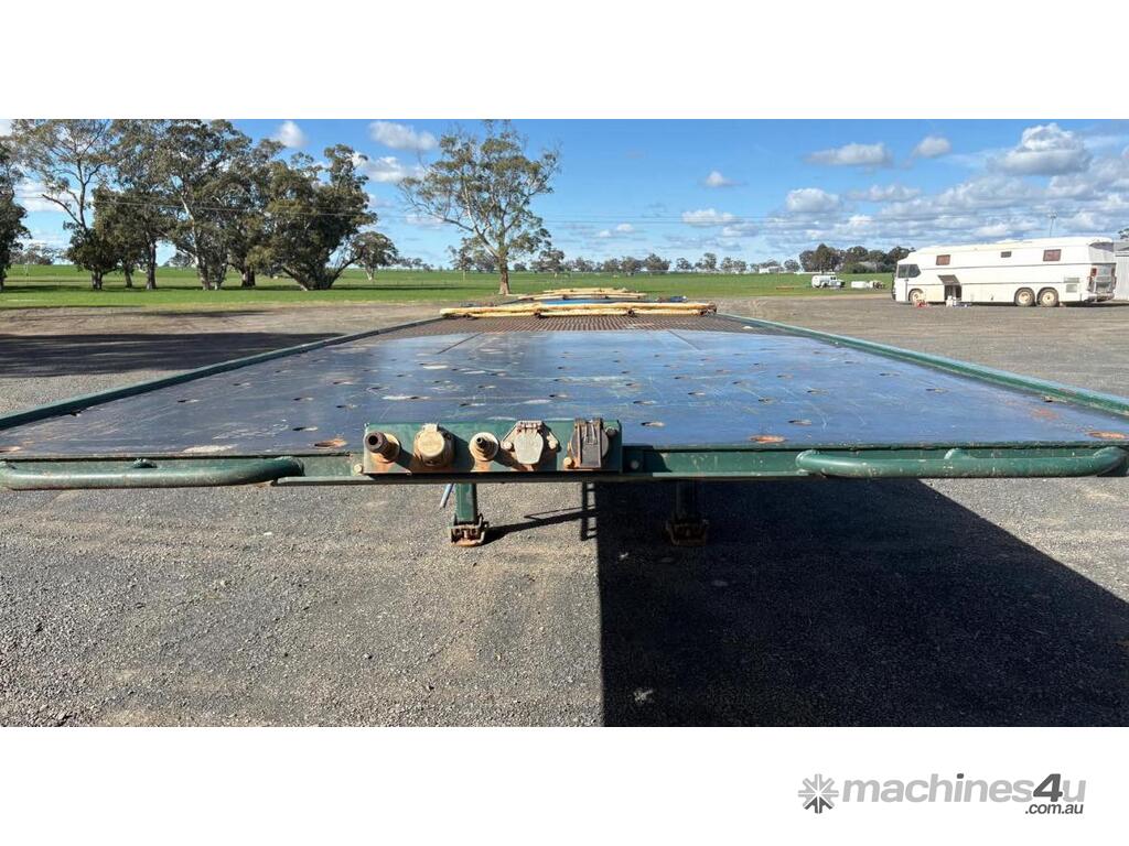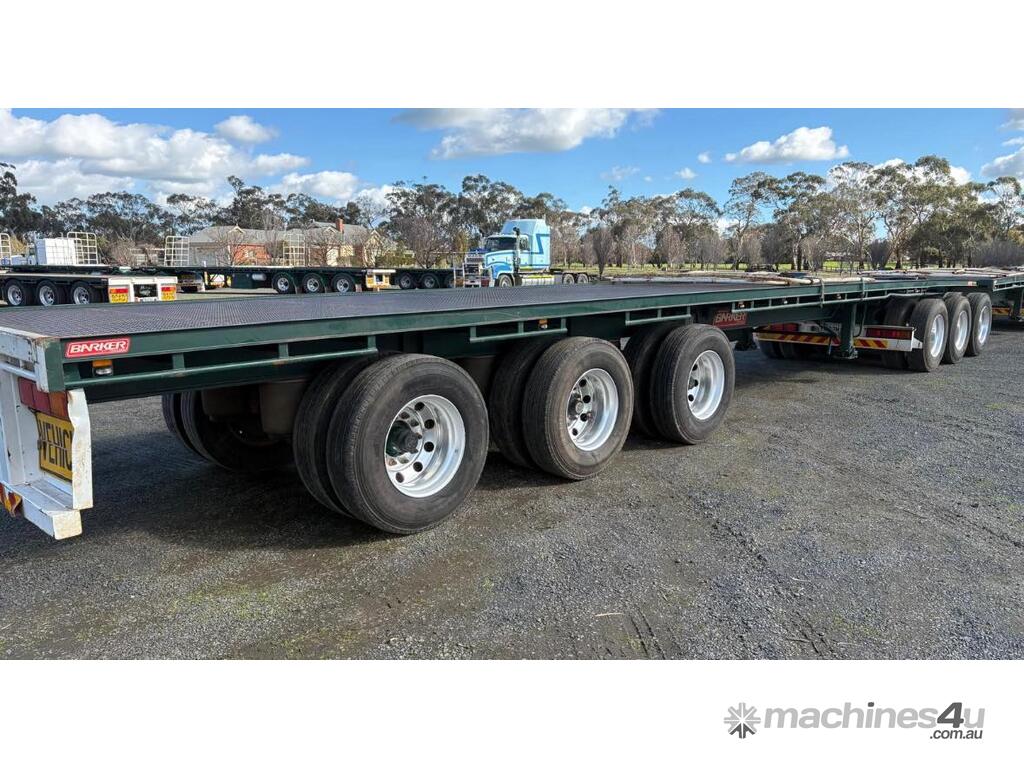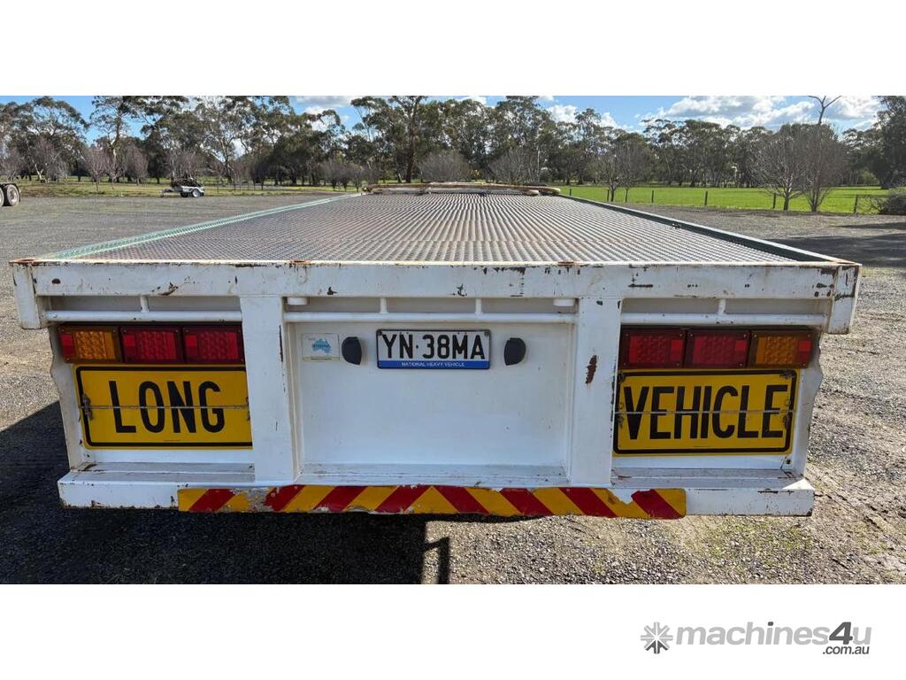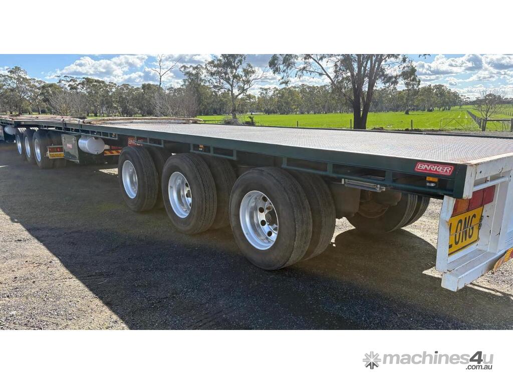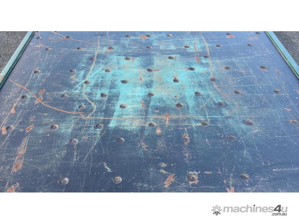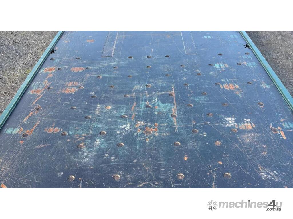 14/14/22 pallet configuration, BPW AL axles & suspension, D36 airbags , jost legs & greaseless turntables, dual position king pins, Alcoa ultra 1 rims, Bridgestone 168 tyres, raise/lower valves & right weigh scales on each trailer, toolbox & water tank on each, front & rear hurdles with chains on each, 1300 mm deck height, fully pressed & welded floors with extra under runners, 21 ton combination tare weight. 35m total length behind 4.4m wheelbase prime mover.