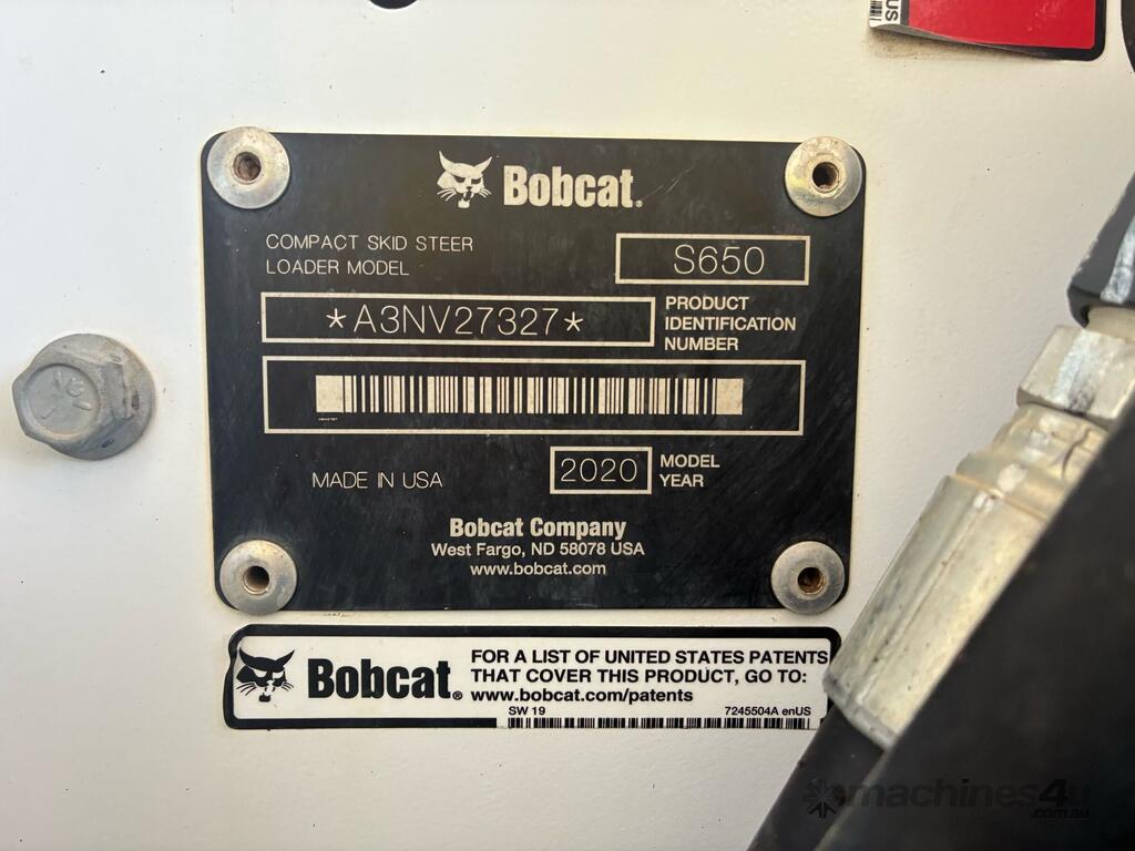 CP: CIRCA 2020,Bobcat,S650,Wheeled Skid Steer,4 Cyl,Diesel,Odometer not visible,1024 (Hrs. Showing on Hour meter),Colour: White,Unregistered,Serial No: A3NV27327,Sold with No Plates,Key No: 162
