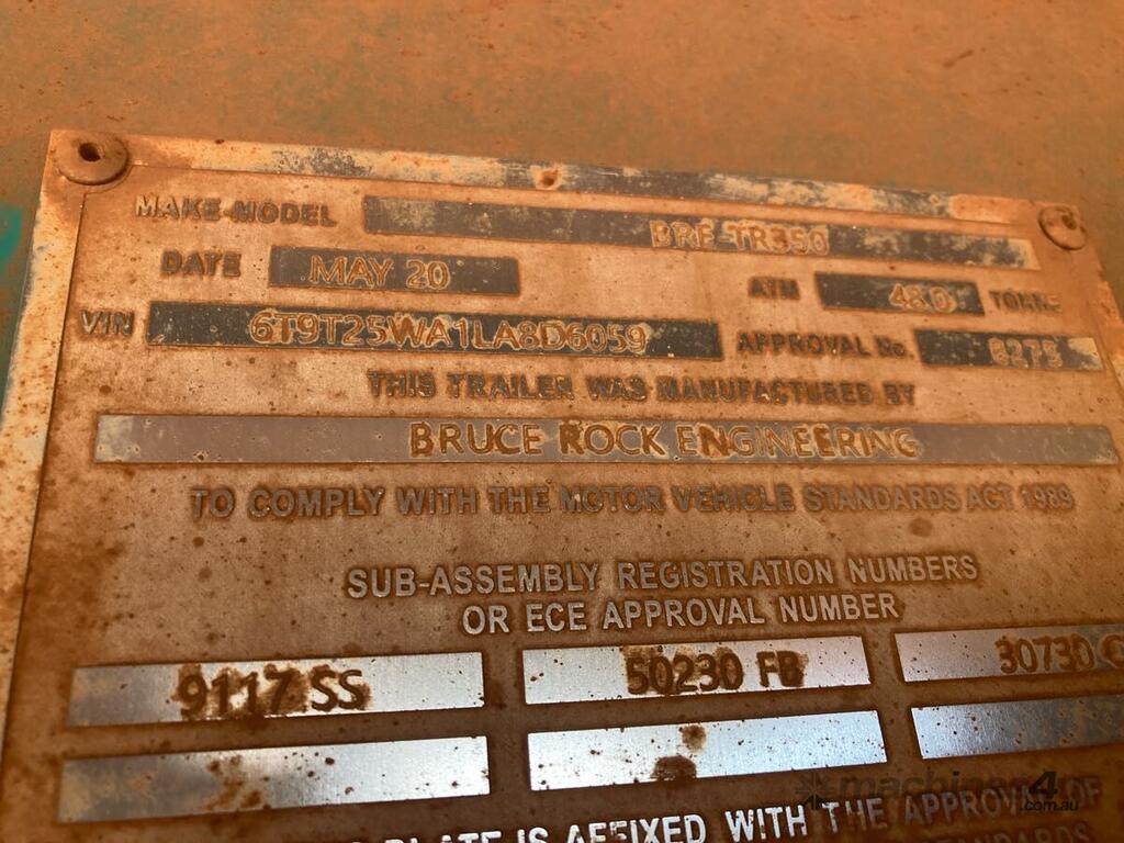 CP: 05/2020,Bruce Rock Engineering,BRE-TR350,Tri Axle Flat Top A Trailer,Colour: Green,Rego. No: NP(1TVF155), Unregistered WA,VIN: 6T9T25WA1LA8D6059,Sold with No Plates