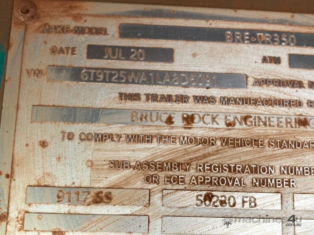 CP: 07/2020,Bruce Rock Engineering,BRE-TR350,Tri Axle Flat Top A Trailer,Colour: Green,Rego. No: NP(1TVI923), Unregistered WA,VIN: 6T9T25WA1LA8D6091,Sold with No Plates