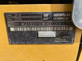 CP: CIRCA 2020,Caterpillar,315,Excavator (Steel Track With Rubber Inserts),4 Cyl,Diesel,Odometer not visible,6940 (Hrs. Showing on Hour meter),Colour: Yellow,Unregistered,Serial No: WKX00220,Sold with No Plates