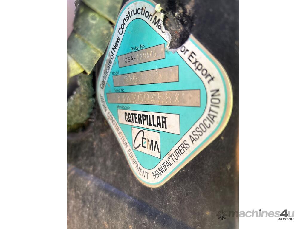 CP: CIRCA 2020,Caterpillar,315,Excavator,Diesel,Odometer not visible,Hourmeter not visible,Colour: Yellow,Unregistered,VIN: CAT00315CWKX00458,Serial No: WKX00458,Sold with No Plates,WOVR Status: WOVR N/A,Incident Type: Impact
