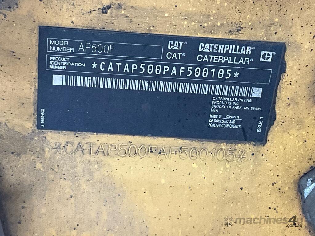 CP: CIRCA 2020,Caterpillar,AP500F,Asphalt Paver,Diesel,Odometer not visible,6456 (Hrs. Showing on Hour meter),Unregistered,Serial No: CATAP500PAF500105,ROPS No: undefined,Sold with No Plates