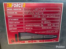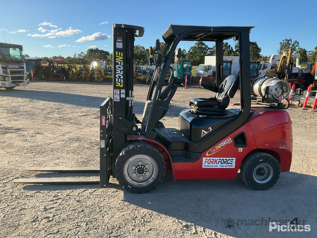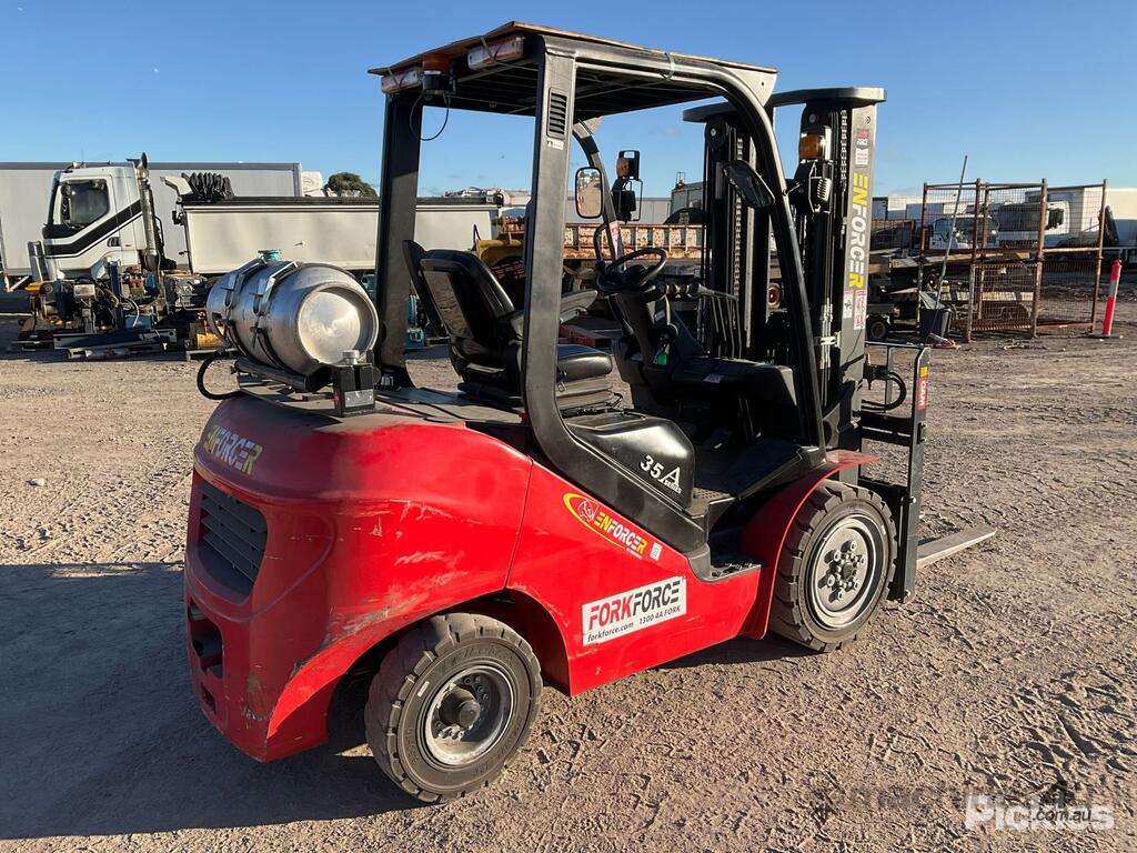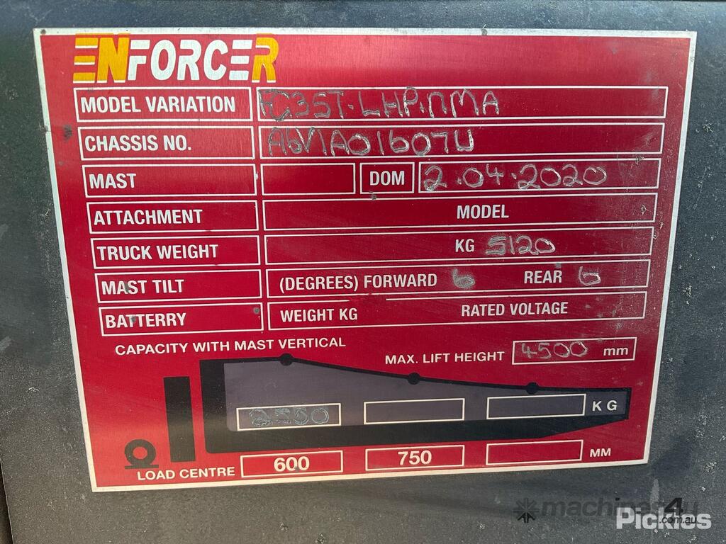 CP: CIRCA 2020,Enforcer,FG35T-LHP-NMA,Forklift (Container Mast),Engine #: GK25074858,4 Cyl,Petrol & LPG (Dual),509 (Hrs. Showing),Colour: Red,Unregistered,Serial No: A6V1A01607U,Sold with No Plates,Key No: 39M