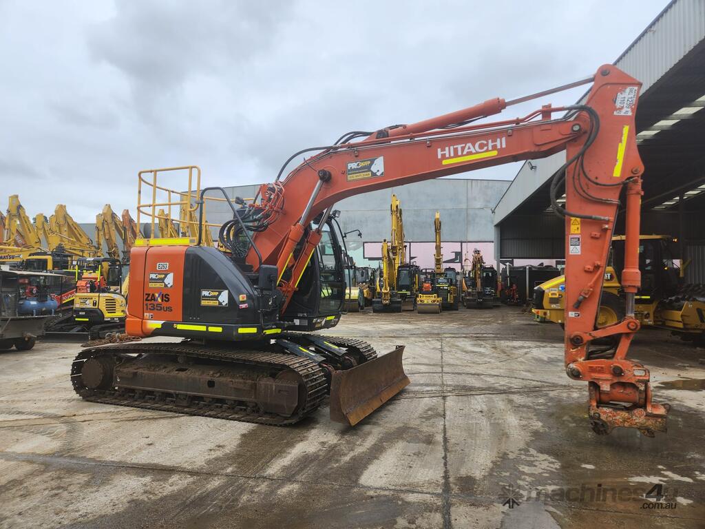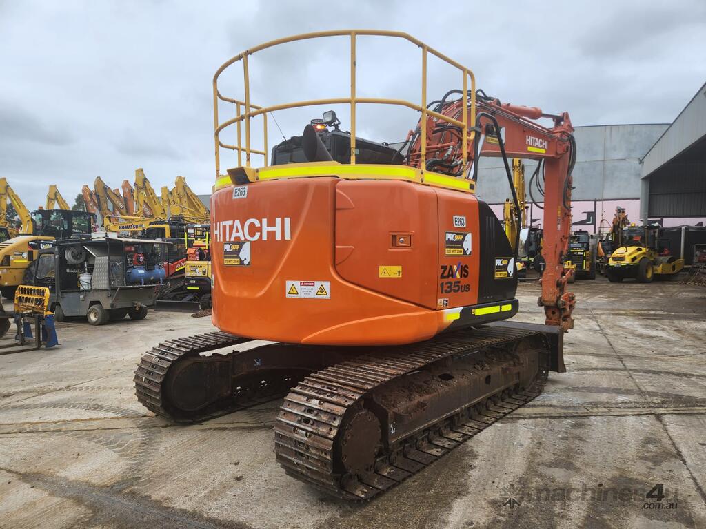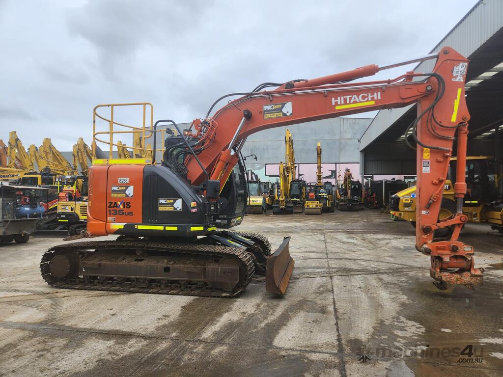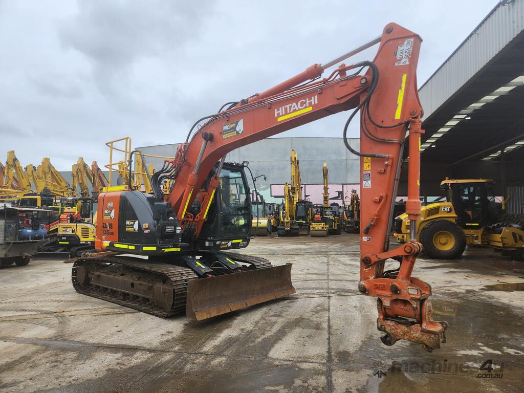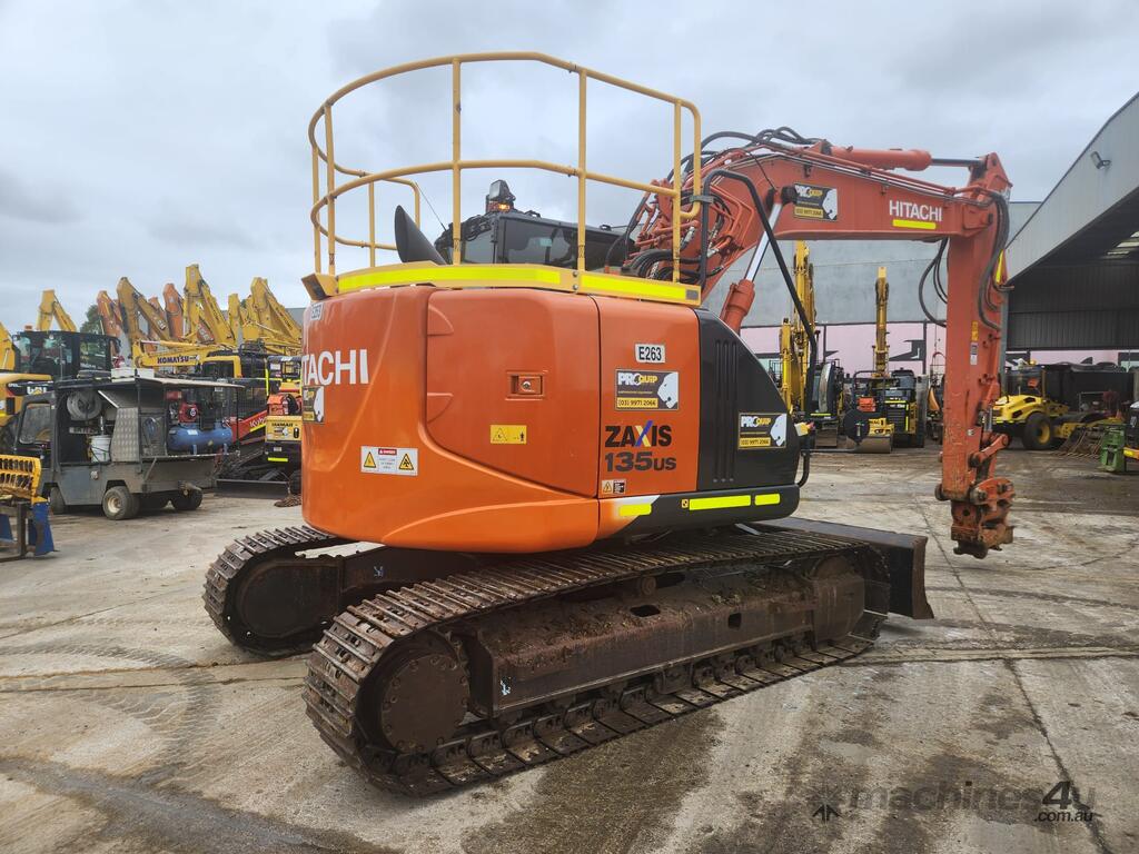 USED 2020 HITACHI ZX135US-5 15T EXCAVATOR (E263) WITH TILTING HYDRAULIC HITCH, REDUCED RADIUS TAIL, 3730 HRS, DOZER BLADE, STEEL TRACKS, FULL A/C CABIN WITH ROPS, TWO WAY FLOW AUXILIARY HYDRAULICS, REAR VIEW CAMERA, SAFETY HANDRAILS, CHECK VALVES, UHF RADIO, E-STOPS, FULL CIVIL SPEC, GP AND MUD BUCKET.