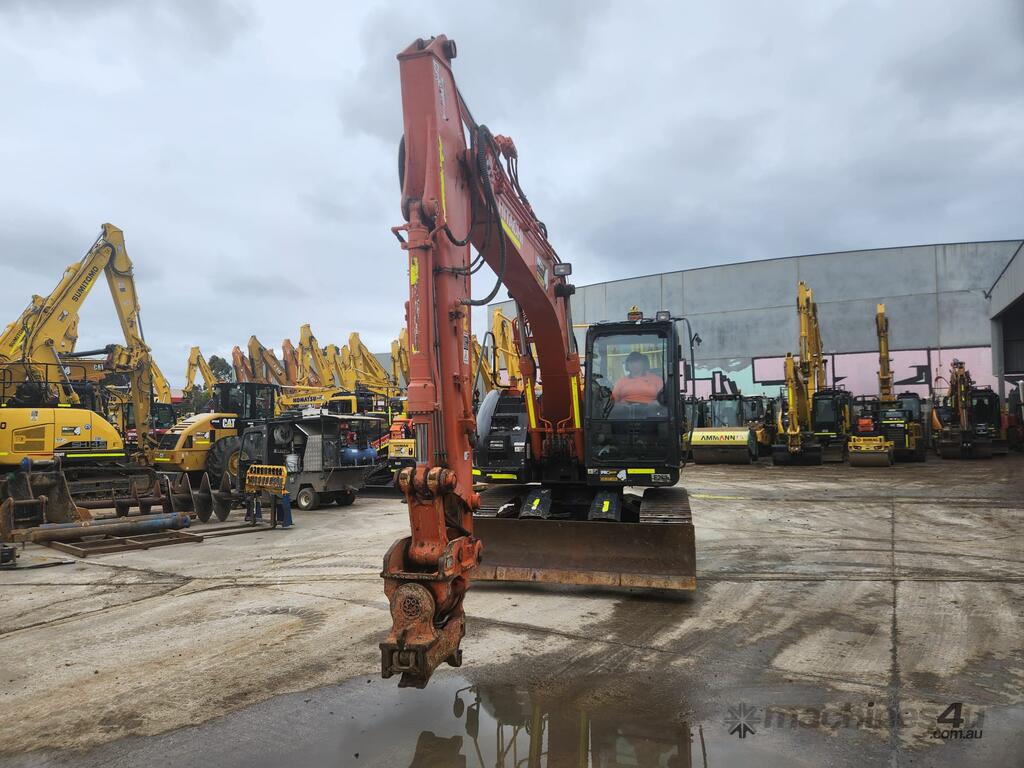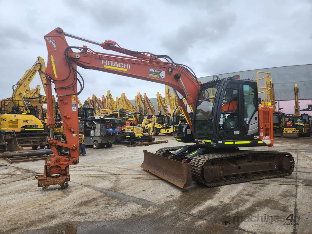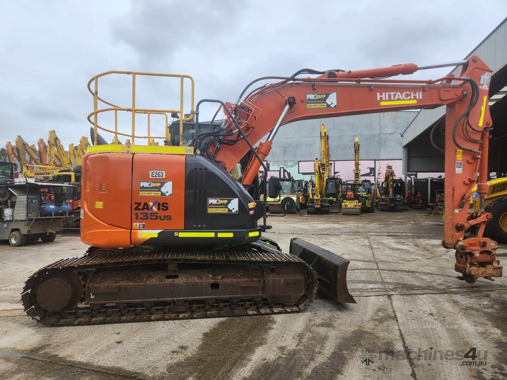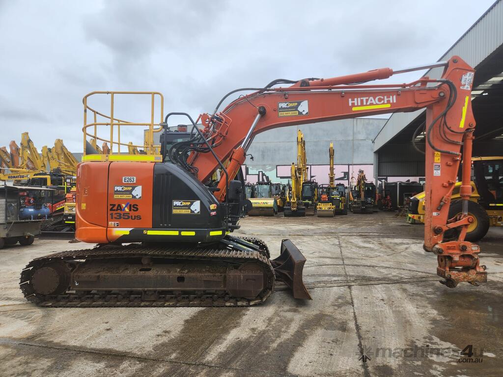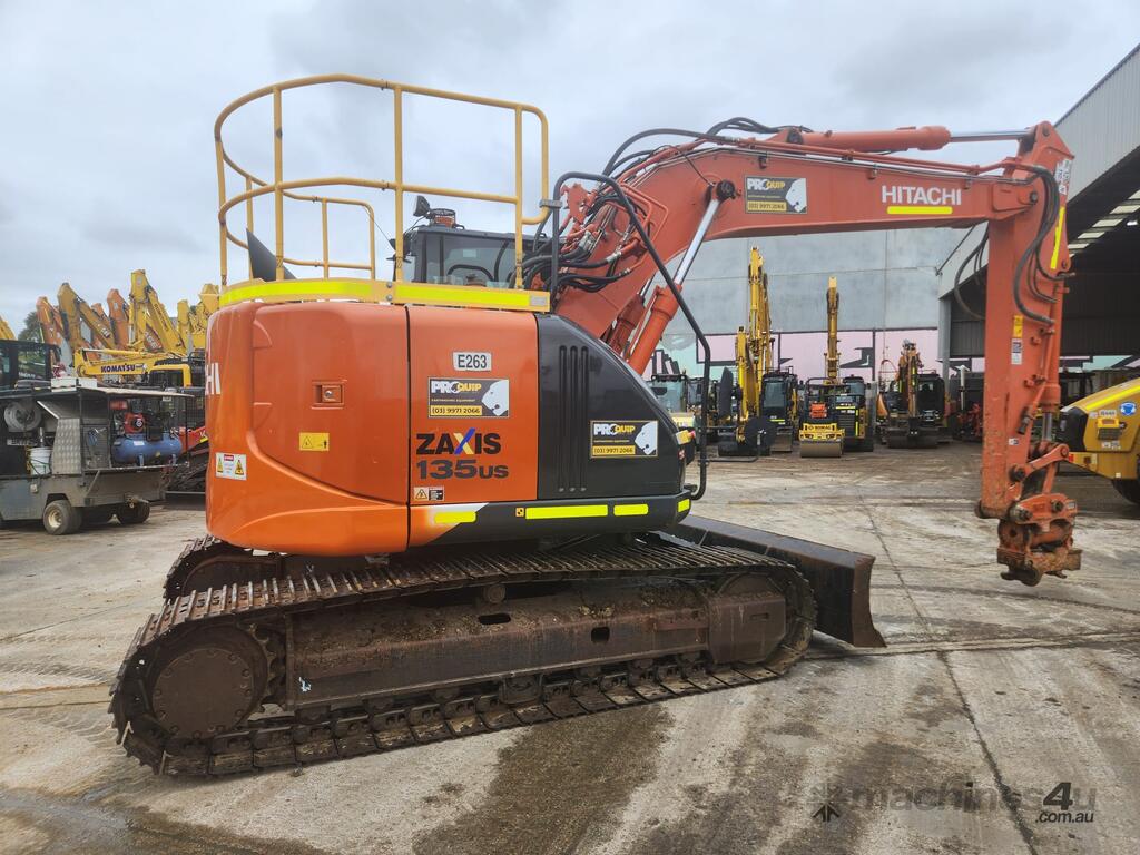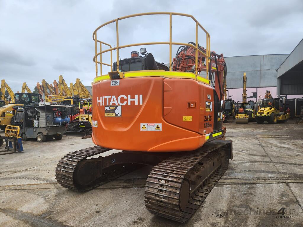 USED 2020 HITACHI ZX135US-5 15T EXCAVATOR (E263) WITH TILTING HYDRAULIC HITCH, REDUCED RADIUS TAIL, 3730 HRS, DOZER BLADE, STEEL TRACKS, FULL A/C CABIN WITH ROPS, TWO WAY FLOW AUXILIARY HYDRAULICS, REAR VIEW CAMERA, SAFETY HANDRAILS, CHECK VALVES, UHF RADIO, E-STOPS, FULL CIVIL SPEC, GP AND MUD BUCKET.