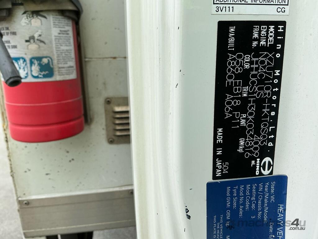 CP: 04/2020,Hino,300 716,Curtainsider,Automatic,Leaf Spring Suspension,Engine #: N04CUS52867,Hino N04C,4 Cyl,Diesel,227048 (Kms. Showing on Odometer),Hourmeter not visible,Colour: White,Rego. No: XV91PM VIC,VIN: JHHUCS1H30K034816,Key No: 133,GVM: 6500,GCM: 7300,Sold with No Plates,Key No: 133