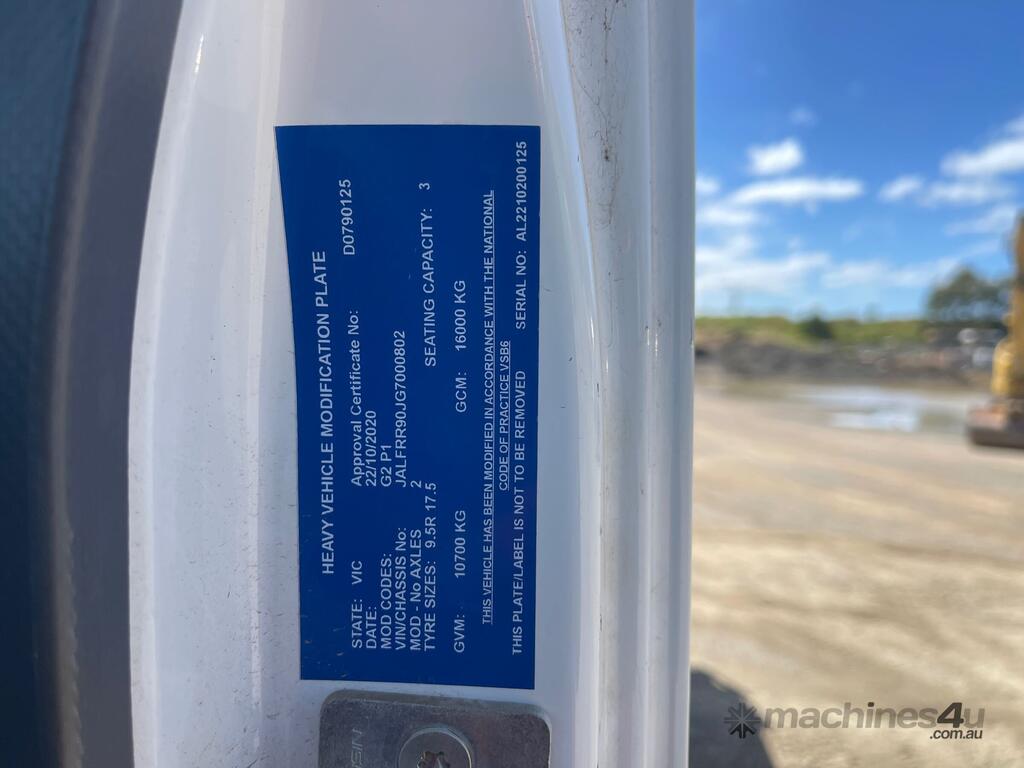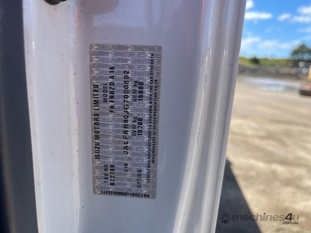 CP: 05/2020,Isuzu,FRR 107-210,Tipper,Manual,Spring Suspenion,4 Cyl,Diesel,Turbo,6 Gears,109472 (Kms. Showing on Odometer),4386 (Hrs. Showing on Hour meter),Colour: White,Rego. No: NP(XV43MT), Unregistered,VIN: JALFRR90JG7000802,GVM: 10700,GCM: 16000,Sold with No Plates