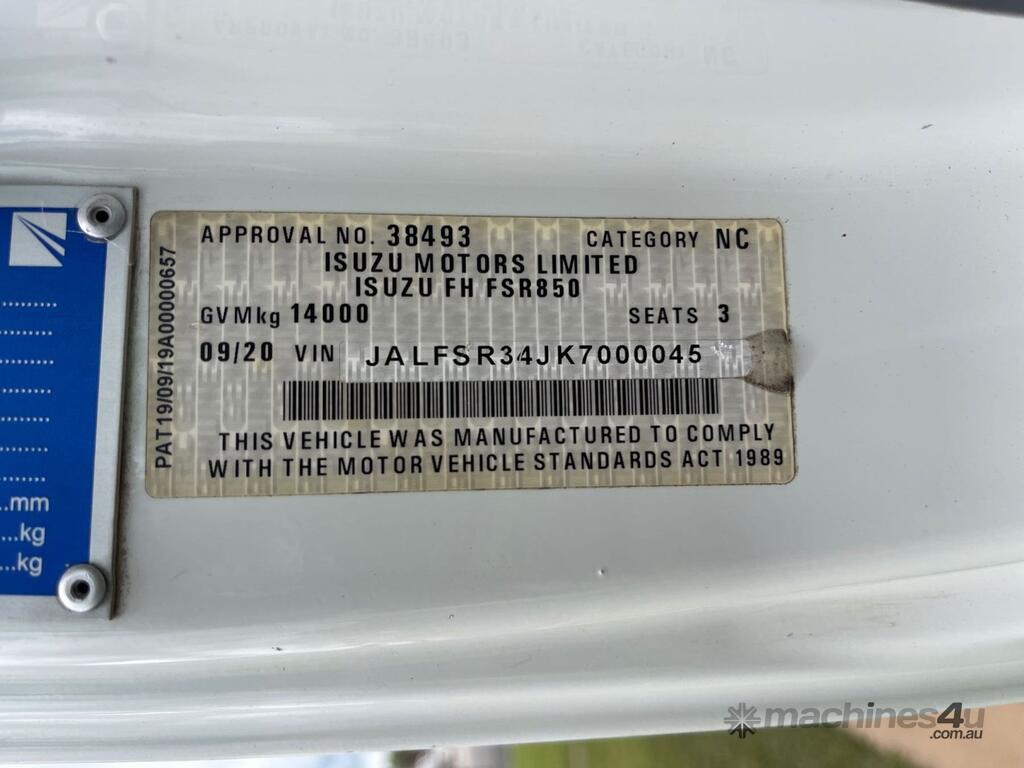 CP: 09/2020,Isuzu,FSR 140-260,Table Top,Automatic,Spring,Engine #: 6HK1237252,Isuzu 6HK1,7790 CC,6 Cyl,Diesel,Direct Injection,6 Gears,23198 (Kms. Showing on Odometer),863 (Hrs. Showing on Hour meter),Rego. No: NP(XS64DK), Unregistered SA,VIN: JALFSR34JK7000045,Key No: T14,Length: 10.3 M,GVM: 14000,GCM: 20000,Sold with No Plates,Key No: T14