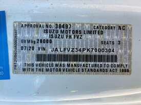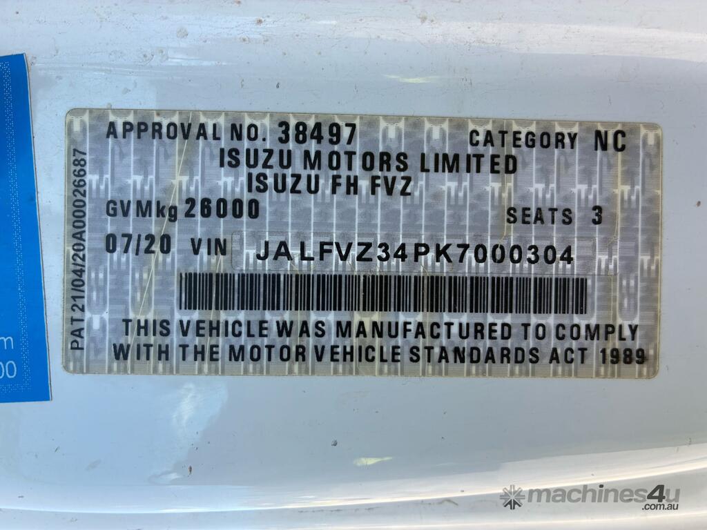 CP: 07/2020,Isuzu,FVZ 260-300,Water Cart,Automatic,Spring Suspension,6 Cyl,Diesel,98307 (Kms. Showing on Odometer),4256 (Hrs. Showing on Hour meter),Colour: White,Rego. No: NP(XV05OL), Unregistered,VIN: JALFVZ34PK7000304,GVM: 26000,GCM: 36000,Sold with No Plates