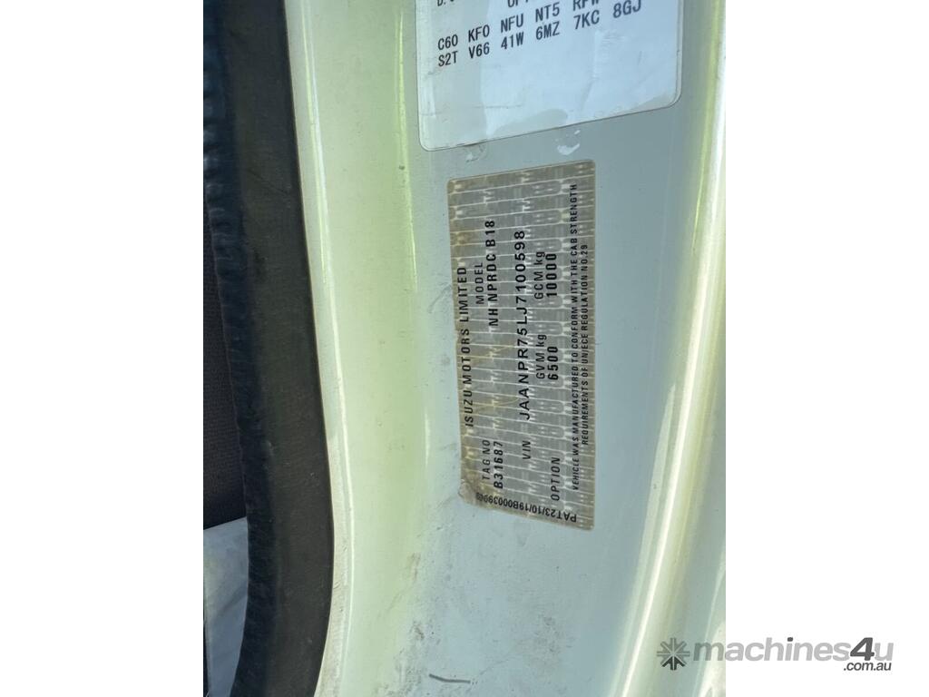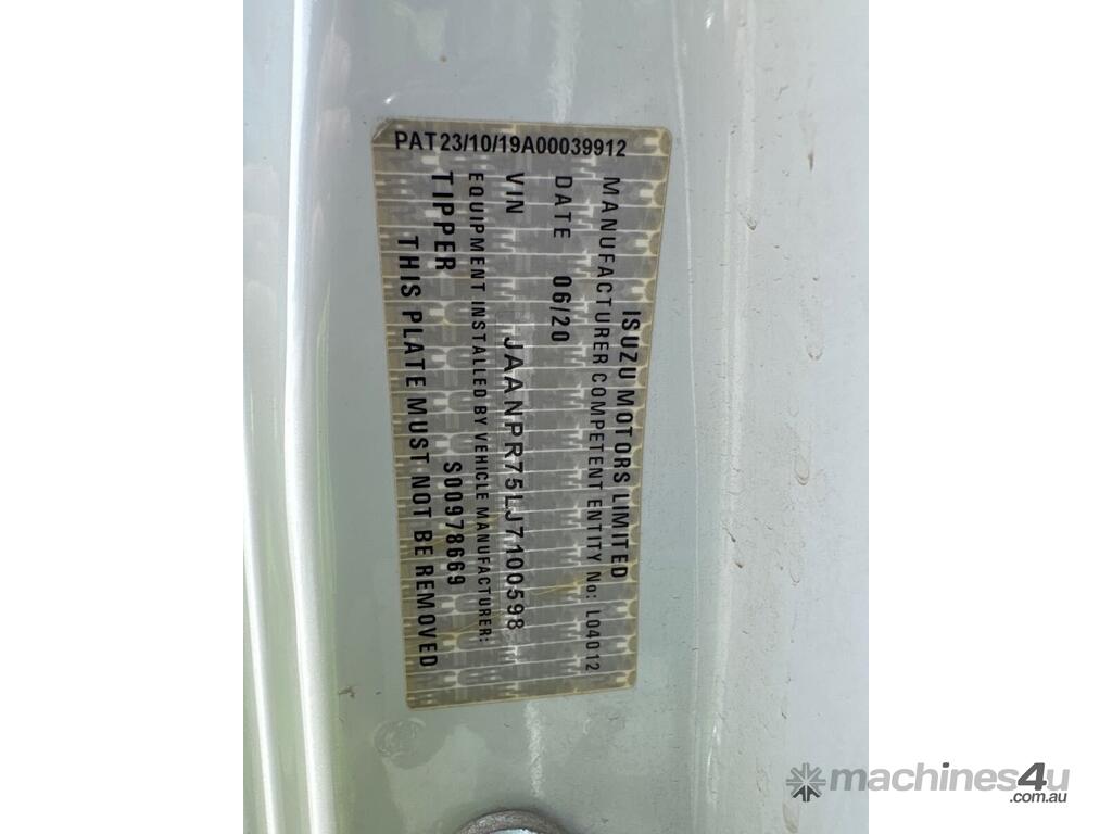 CP: 06/2020,Isuzu,NPR 65 190,Dual Cab Crane Tipper,Manual,Leaf Spring Suspension,4 Cyl,Diesel Turbo,6 Gears,143936 (Kms. Showing on Odometer),4839 (Hrs. Showing on Hour meter),Colour: White,Rego. No: NP(XV53MT), Unregistered NAT,VIN: JAANPR75LJ7100598,Length: 6.7 m,GVM: 6500,GCM: 10000,Sold with No Plates