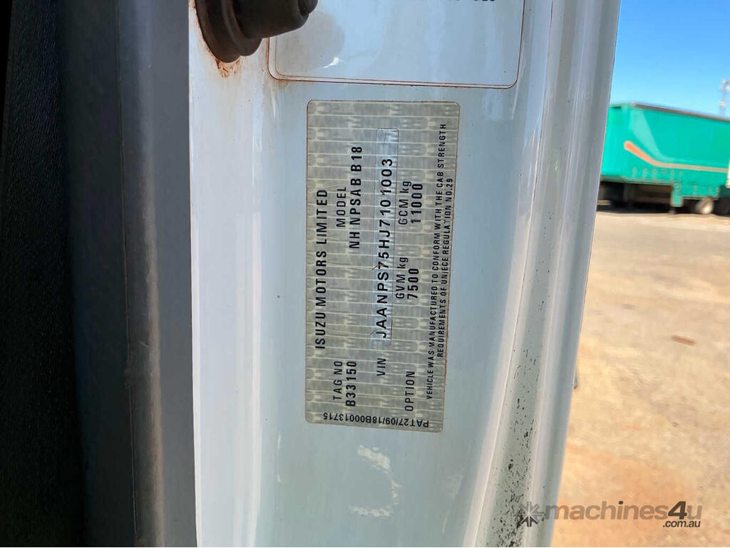 CP: 01/2020,Built: 01/2020,Isuzu,NPS 75-155,Service Truck,Manual,Leaf Spring ,Engine #: 4HK10CH465,5190 CC,4 Cyl,Diesel Turbo,5 Gears,94791 (Kms. Showing on Odometer),6712 (Hrs. Showing on Hour meter),Colour: White,Rego. No: NP(101003), Unregistered WA,VIN: JAANPS75HJ7101003,Key No: 416,Length: 6 m,GVM: 7500,GCM: 11000,Sold with No Plates,Key No: 416