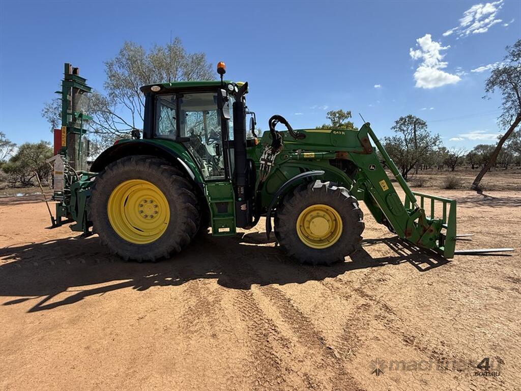2020 JOHN DEERE 6140M FRONT END LOADER. Serial no. 1L06140MELX973398. Command quad plus transmission. Premium seat. Supplied with 643R front end loader with pallet forks. Unused PTO. 3PL. 4wd. Premium light package. Front tyres 540/65R24. Rear tyres 600/65R38. SF3 Starfire 6000 receiver with 4240 display. 3 x hydraulic remotes. TLS front suspension. Serviced by RDO St George. One owner tractor, presenting in excellent condition. UHF. Located The Marra, NSW