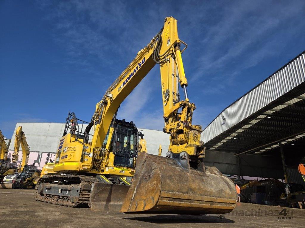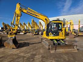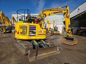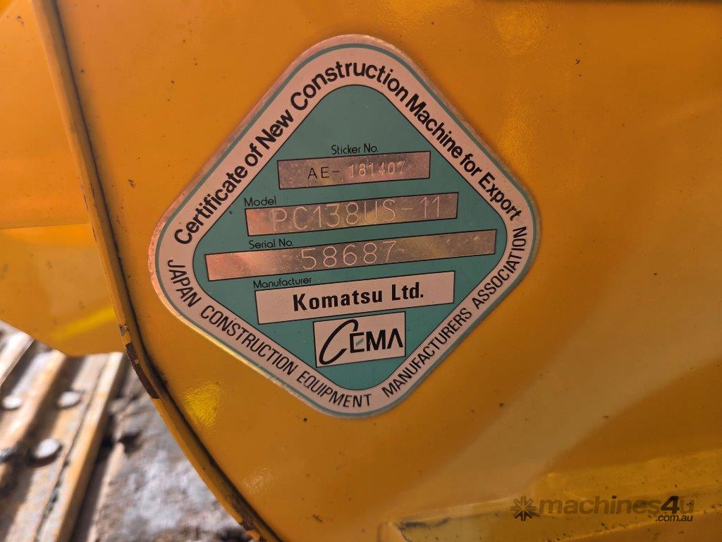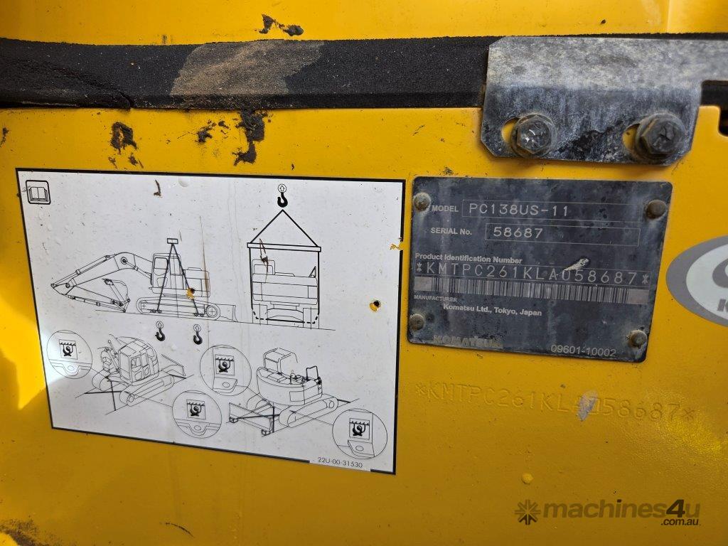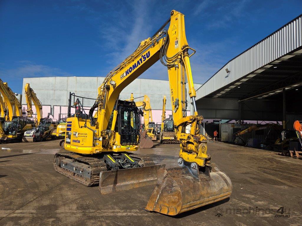 USED 2020 KOMATSU PC138US-11 15T EXCAVATOR (E305) WITH REDUCED RADIUS TAIL, 3400 HOURS HRS, DOZER BLADE, STEEL TRACKS WITH PADS, TILTING HYDRAULIC HITCH, TOPCON GPS WIRING ONLY, FULL A/C CABIN WITH ROPS, TWO WAY FLOW AUXILIARY HYDRAULICS, REAR VIEW CAMERA, SAFETY HANDRAILS, CHECK VALVES, UHF RADIO, E-STOPS, FULL CIVIL SPEC, GP AND MUD BUCKET. ONE OWNER, FULL SERVICE HISTORY. RISK ASSESMENT, READY FOR WORK. AUSTRALIAN DELIVERED IN FEBRUARY 2021, BALANCE OF FACTORY WARRANTY;