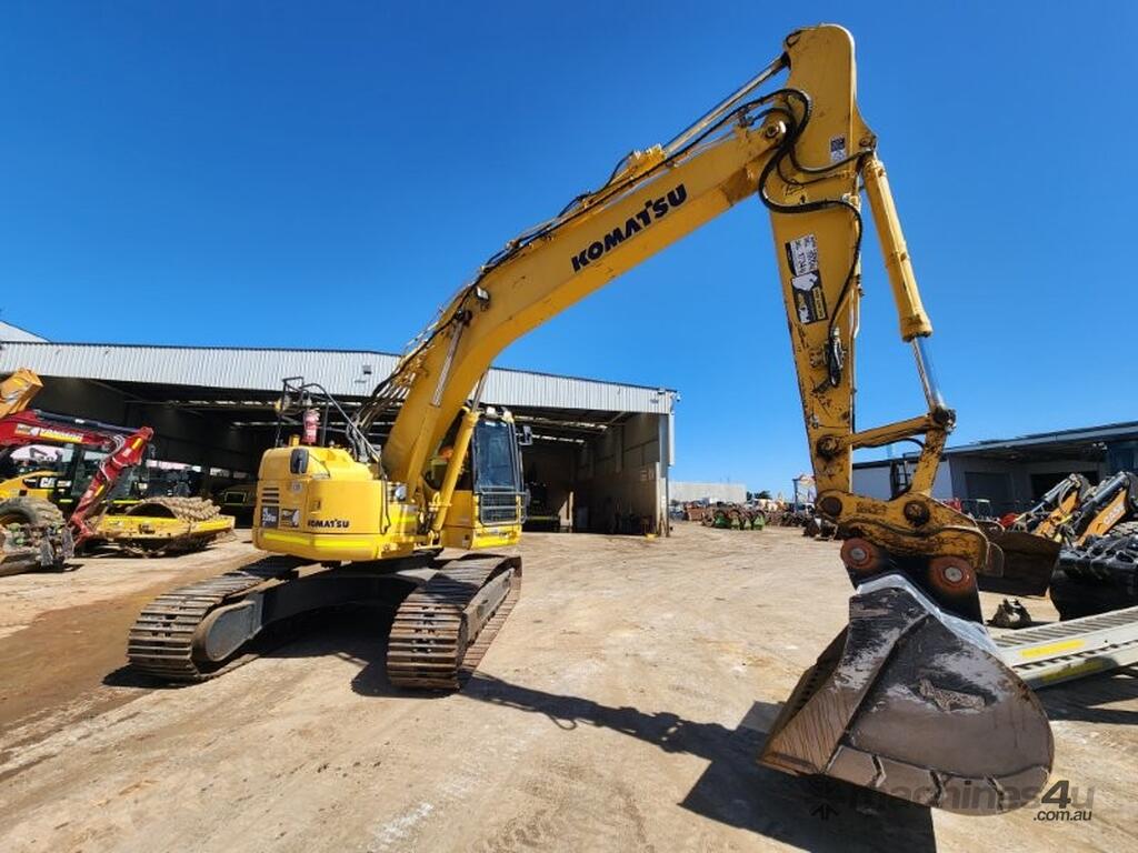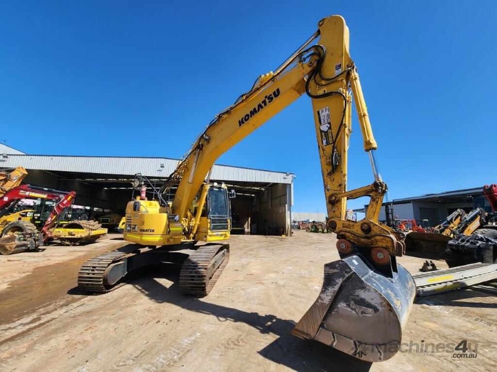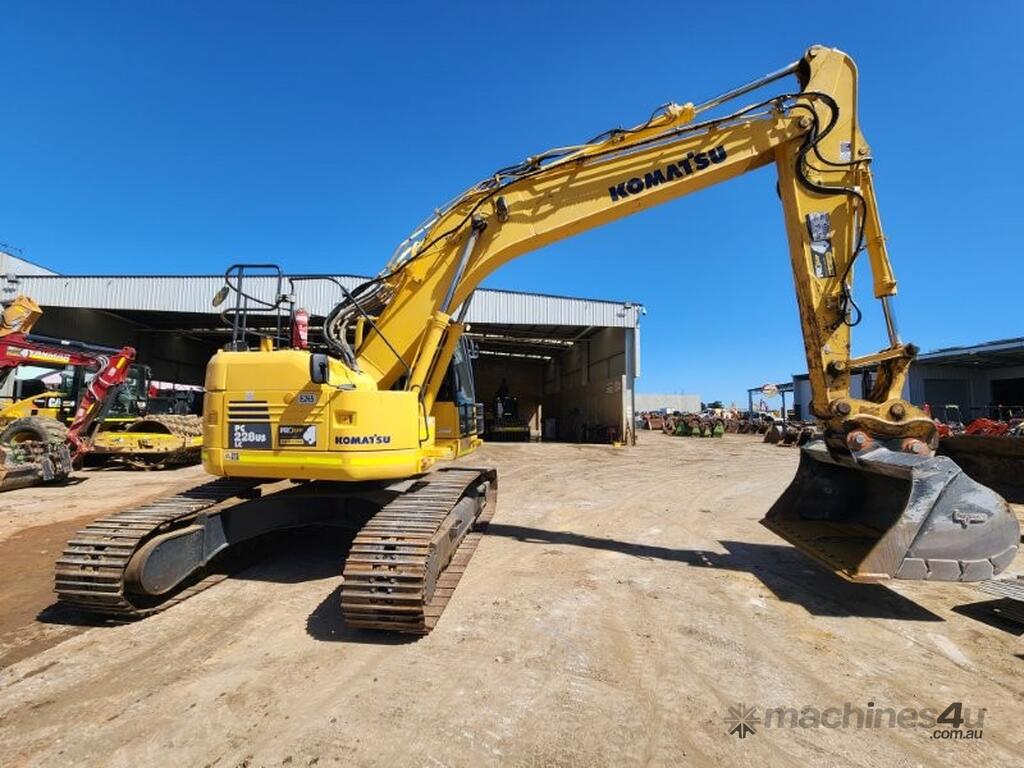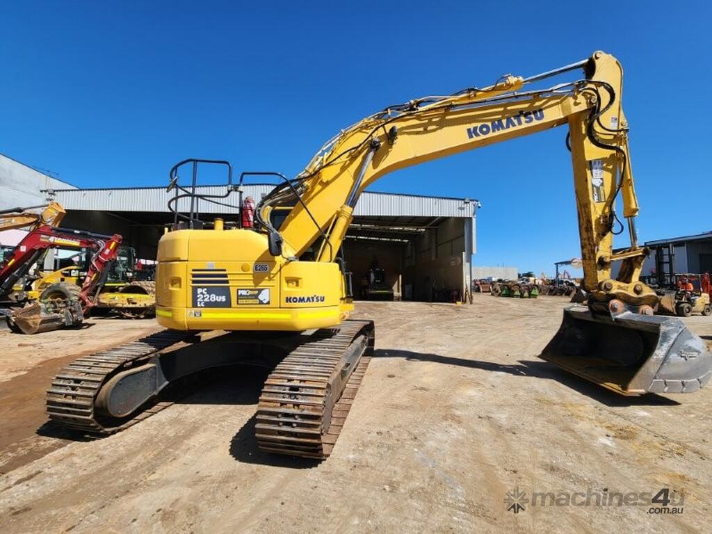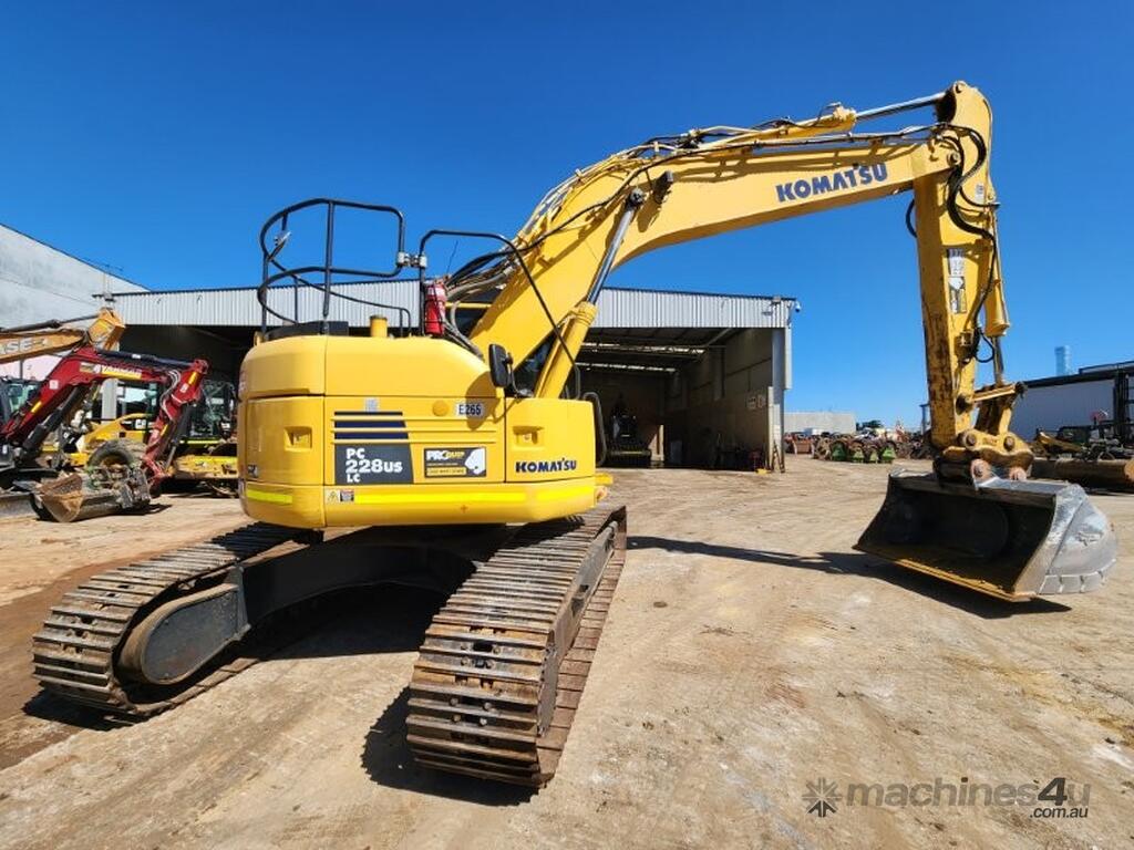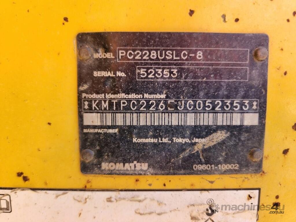 2020 KOMATSU PC228USLC-8 24t EXCAVATOR (E265) WITH 4400 HRS, REDUCED RADIUS, STEEL TRACKS, HYDRAULIC SAFETY HITCH, FULL A/C CABIN WITH ROPS, TWO WAY FLOW AUXILIARY HYDRAULICS, REAR VIEW CAMERA, SAFETY HANDRAILS, CHECK VALVES, UHF RADIO, E-STOPS, FULL CIVIL SPEC, GP AND MUD BUCKET.