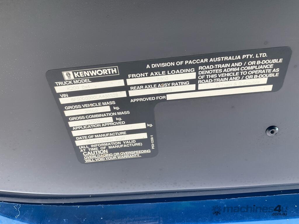 CP: 09/2020,Kenworth,K200 Big Cab,Prime Mover,Manual,Airbag,Engine #: 80264144,Cummins X15,6 Cyl,Diesel,18 Gears,16310 (Kms. Showing on Odometer),13260 (Hrs. Showing on Hour meter),Colour: Blue,Rego. No: NP(XV54NY), Unregistered NAT,VIN: 6F5000000LA468328,GVM: 26500,GCM: 97000,Sold with No Plates