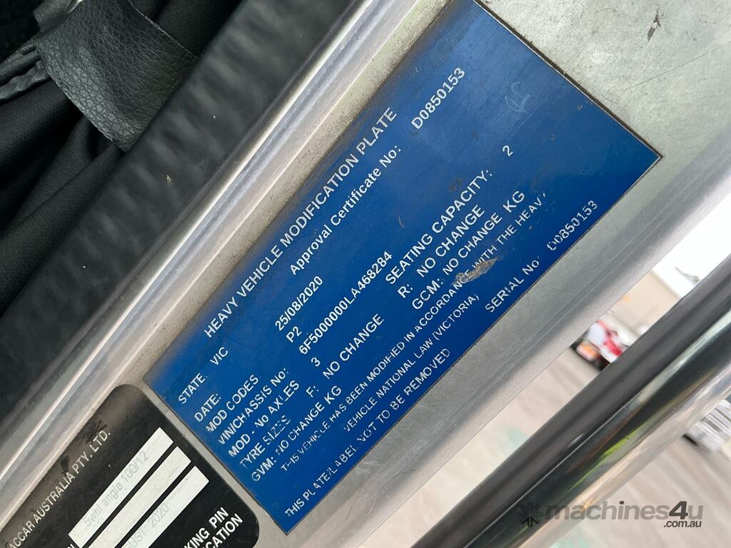 CP: 08/2020,Kenworth,K200 Series,Prime Mover Sleeper Cab,Automatic,Airbag Suspension,Odometer not visible,Hourmeter not visible,Colour: Grey,Rego. No: NP(XV79MT), Unregistered VIC,VIN: 6F5000000LA468284,GVM: 26500,GCM: 97000,Sold with No Plates