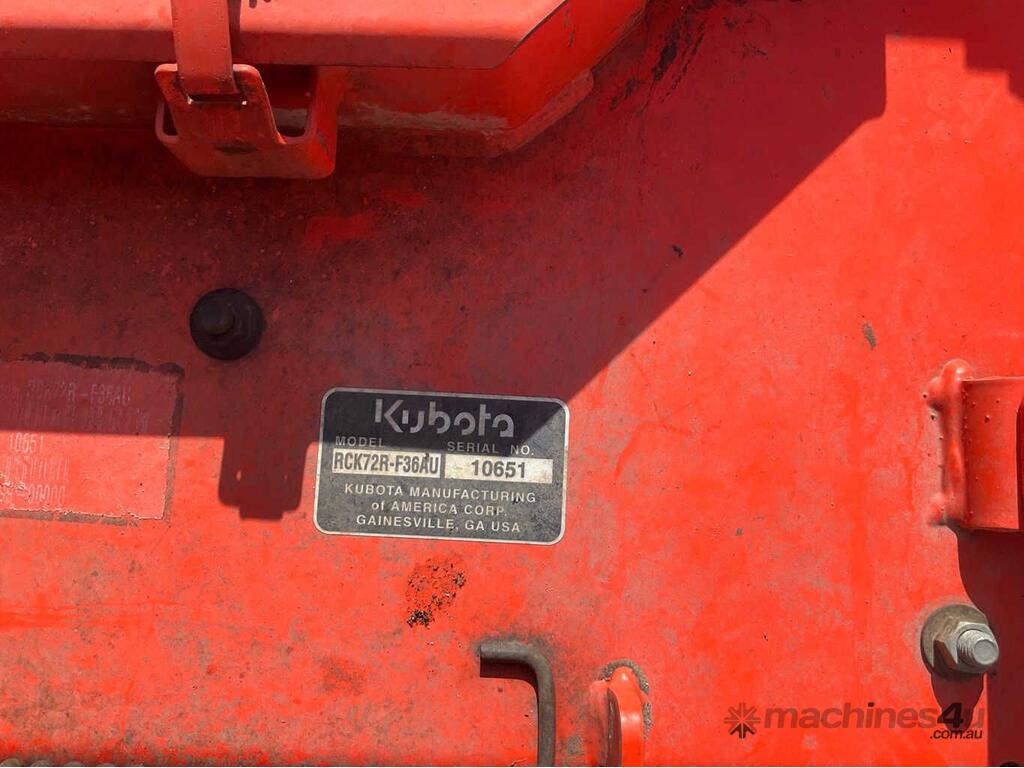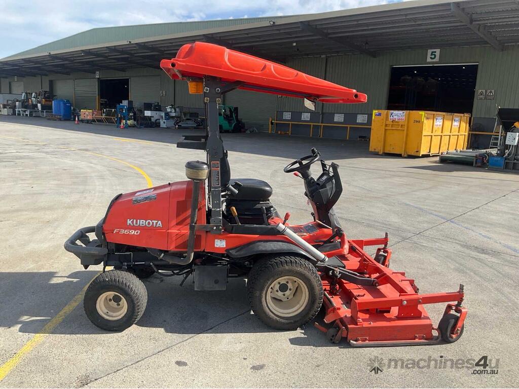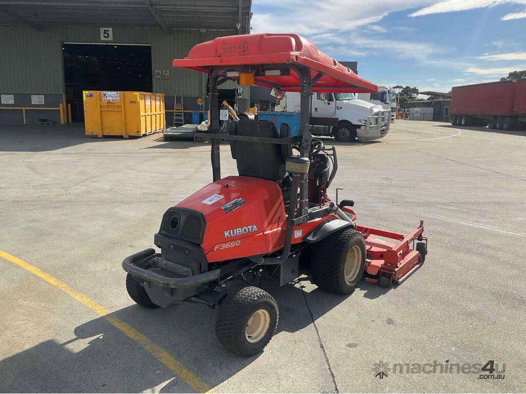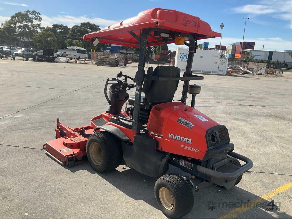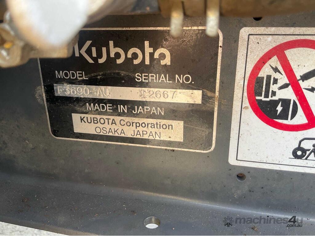 CP: 06/2020,Kubota,F3690-AU,Ride On Mower,4 Cyl,Diesel,Odometer not visible,1987 (Hrs. Showing on Hour meter),Colour: Orange,Unregistered,Serial No: 12667,ROPS No: undefined,Sold with No Plates,Key No: 7
