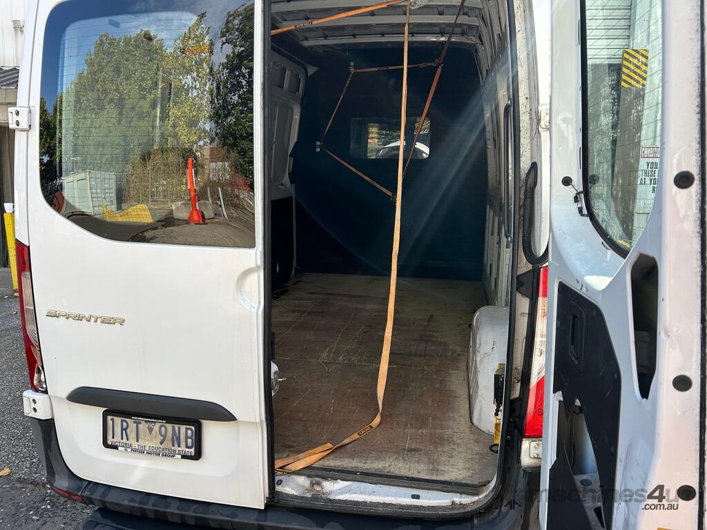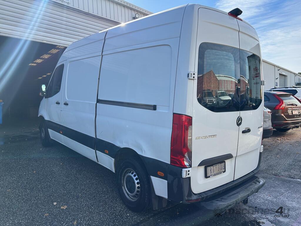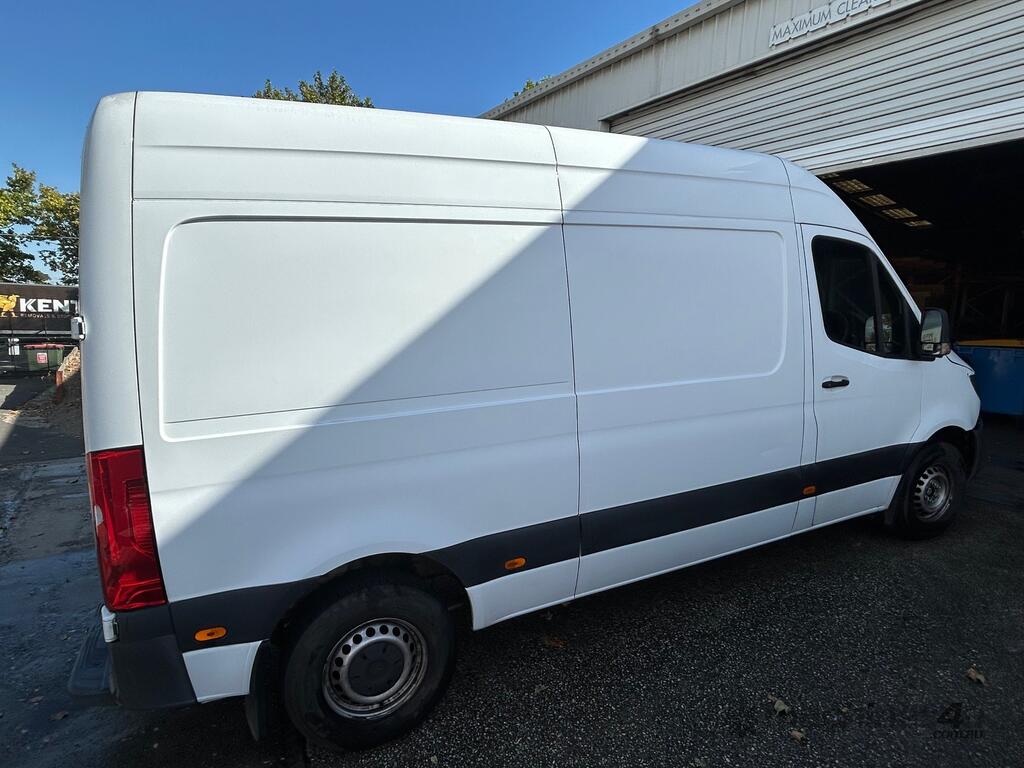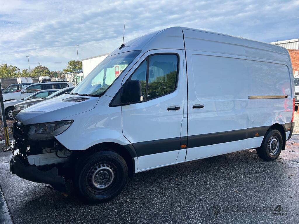 6/2020 Mercedes Benz 910 (414 CDI) high roof long wheelbase Sprinter 3-seater van, powered by a 4 cylinder 2.1lt diesel engine, automatic transmission, full electrics, media centre, reverse camera, A/C, 1 x key, owners' books, tow attachment.