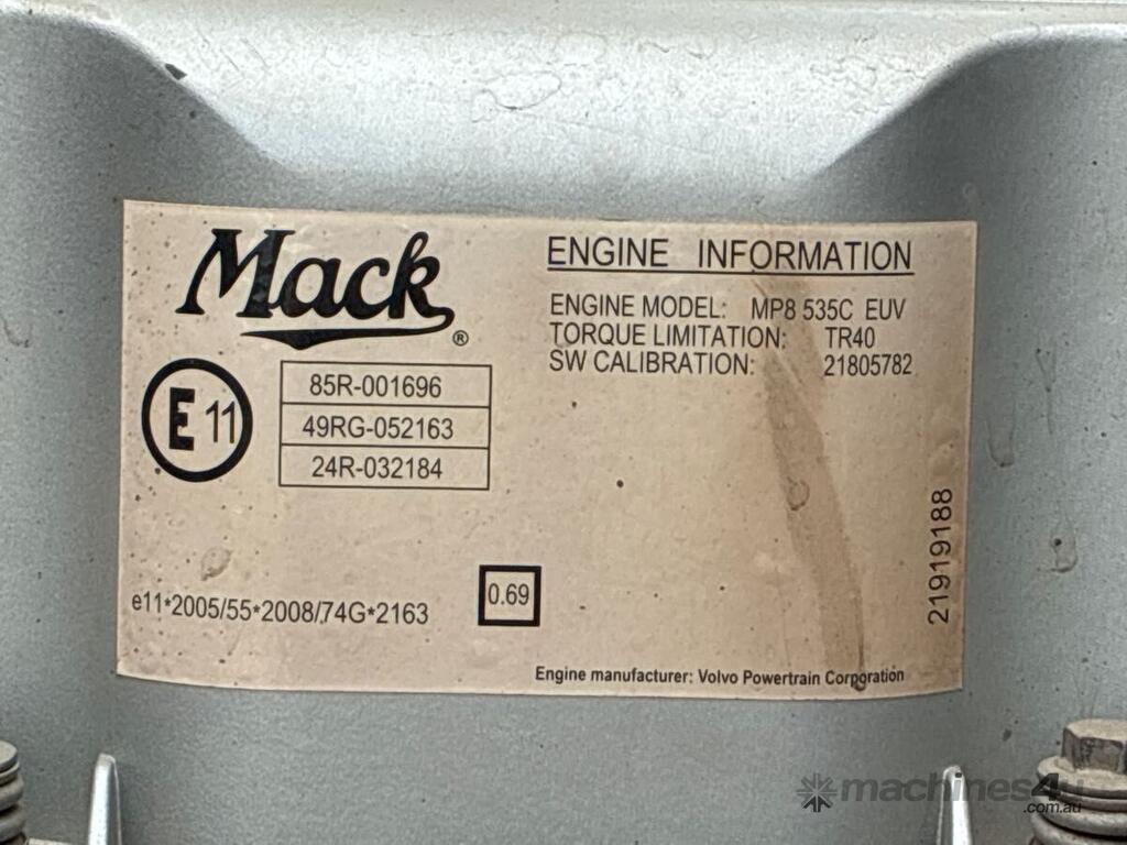 CP: 07/2020,Mack,Trident,Prime Mover,Automatic,Airbag,MP8,6 Cyl,Diesel,664854 (Kms. Showing on Odometer),8733 (Hrs. Showing on Hour meter),Colour: White,Rego. No: NP(XQ03QR), Unregistered,VIN: 6FMTR1GT4LD811740,Key No: T50,Length: 7.6 m,GVM: 27500,GCM: 70000,Sold with No Plates,Key No: T50