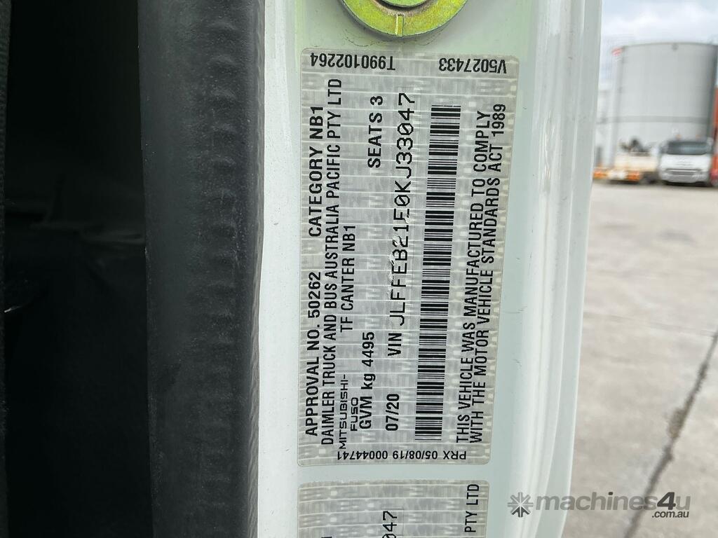 CP: 07/2020,Mitsubishi,Canter 515,Single Cab Tray,Manual,Spring,Engine #: 4P10D91017,Mitsubishi Fuso 4P10,4 Cyl,Diesel,5 Gears,65791 (Kms. Showing on Odometer),Hourmeter not visible,Colour: White,Unregistered,VIN: JLFFEB21E0KJ33047,Key No: 189,Length: 6.15 m,GVM: 4495,GCM: 7995,Sold with No Plates,Key No: 189