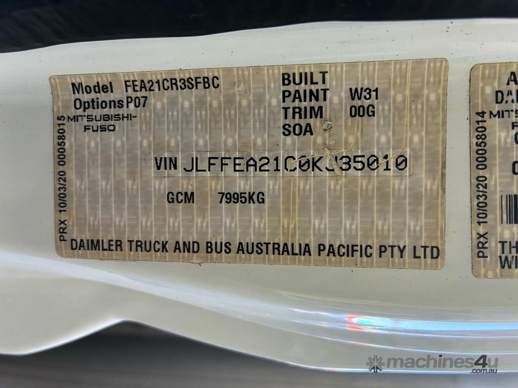 CP: 07/2020,Mitsubishi Fuso,Canter 515,Table Top,Automatic,Spring,4 Cyl,Diesel,63533 (Kms. Showing on Odometer),Hourmeter not visible,Colour: White,Rego. No: NP(856ZVJ), Unregistered QLD,VIN: JLFFEA21C0KJ35010,Key No: 348,GVM: 4495,GCM: 7995,Sold with No Plates,Key No: 348