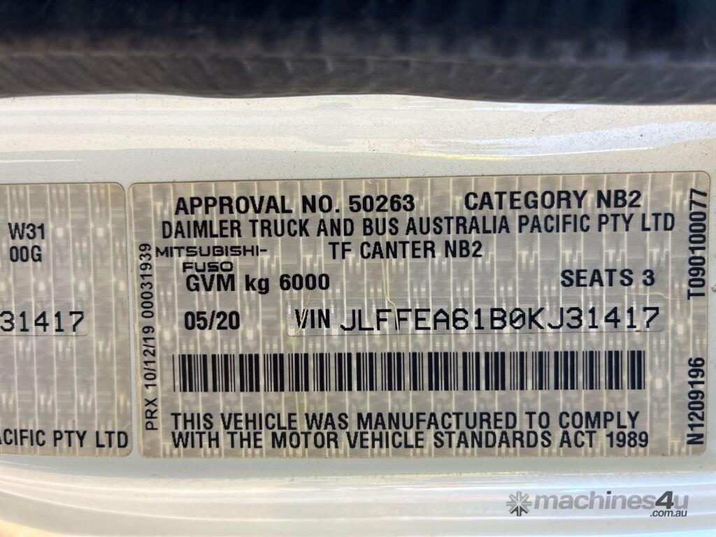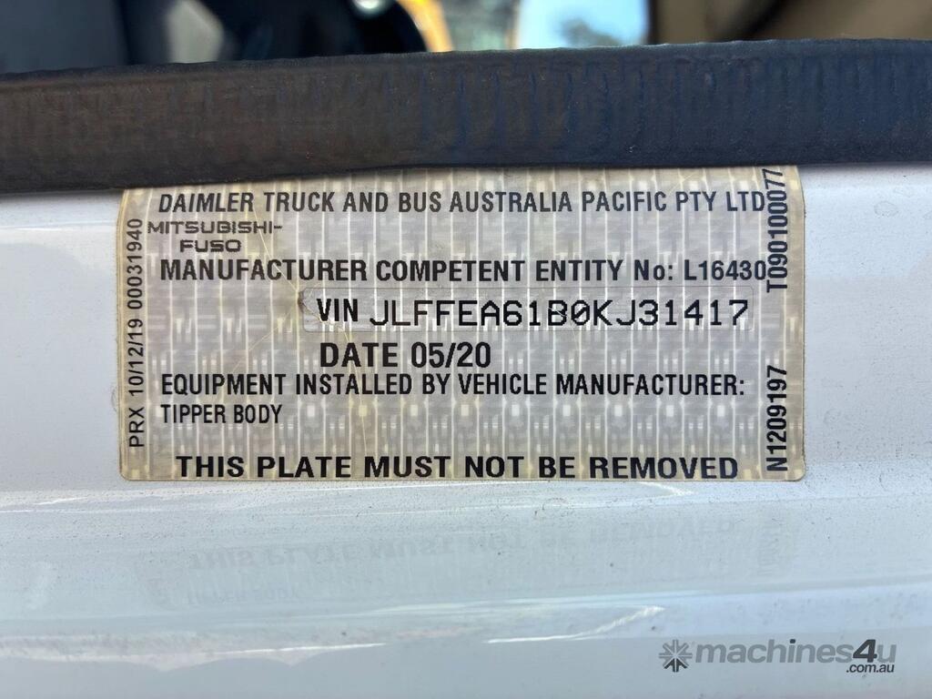 CP: 05/2020,Mitsubishi Fuso,Canter 615,Tipper,Manual,Spring,4 Cyl,Diesel,5 Gears,38022 (Kms. Showing on Odometer),Hourmeter not visible,Rego. No: NP(XQ22NE), Unregistered,VIN: JLFFEA61B0KJ31417,GVM: 6000,GCM: 9500,Sold with No Plates
