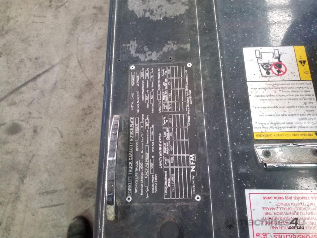 This unit is well suited to general warehousing, manufacturing, and distribution environments where consistent uptime and predictable operating costs matter. Nichiyu forklifts are known for their durability, stability, and operator comfort, making them a popular choice for high-use applications.