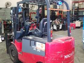 Quality Japanese-brand electric counterbalance forklift, ideal for warehouses needing reliable 3.0T capacity with low running costs. This Nichiyu FB30-77 is in excellent condition, presents well, and is fully workshop checked.