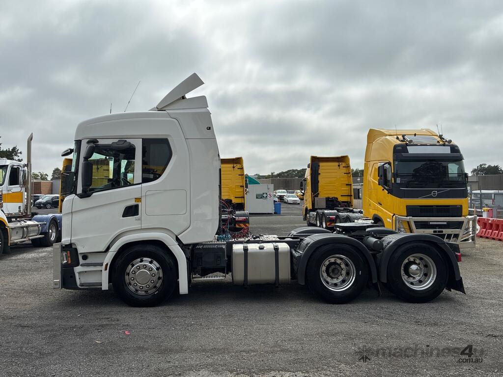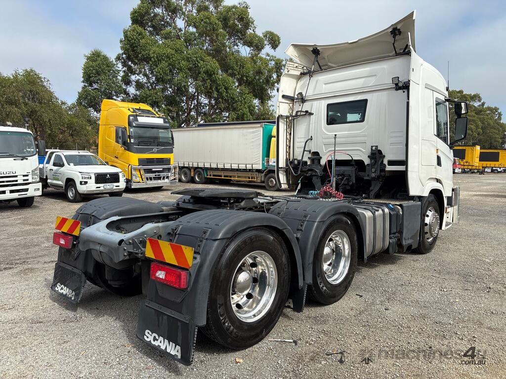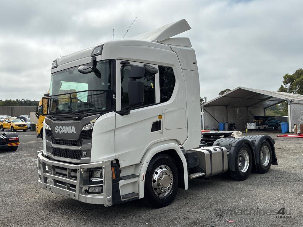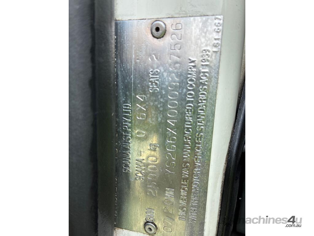 CP: 07/2020,Scania,G500,Prime Mover Sleeper Cab,Automatic,Airbag,Engine #: 7214673,6 Cyl,Diesel Turbo,1004805 (Kms. Showing on Odometer),14432 (Hrs. Showing on Hour meter),Colour: White,Rego. No: NP(XN25TD), Unregistered,VIN: YS2G6X6,Key No: 270,GVM: 26100,GCM: 75000,Sold with No Plates,Key No: 270