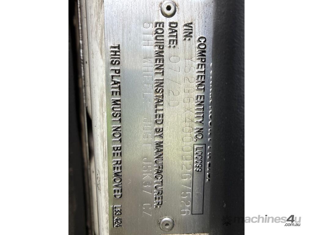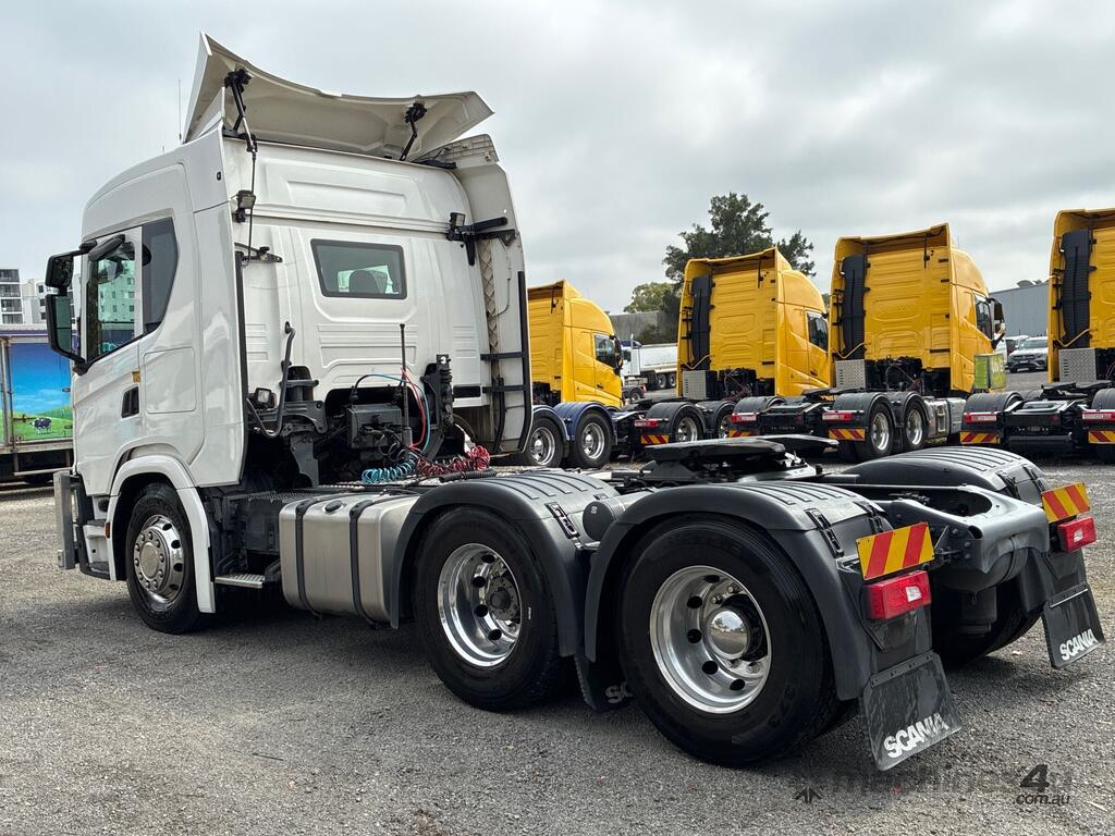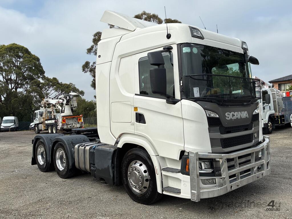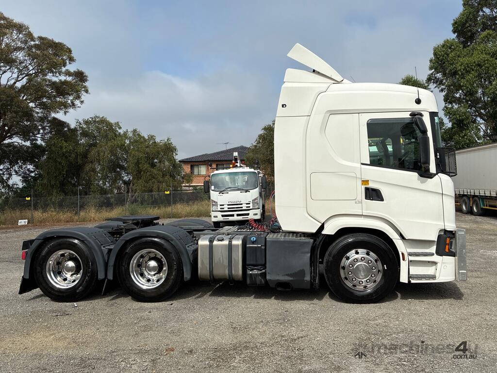 CP: 07/2020,Scania,G500,Prime Mover Sleeper Cab,Automatic,Airbag,Engine #: 7214673,6 Cyl,Diesel Turbo,1004805 (Kms. Showing on Odometer),14432 (Hrs. Showing on Hour meter),Colour: White,Rego. No: NP(XN25TD), Unregistered,VIN: YS2G6X6,Key No: 270,GVM: 26100,GCM: 75000,Sold with No Plates,Key No: 270