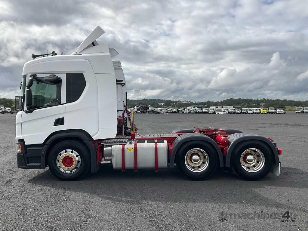 CP: 04/2020,Scania,P450,Prime Mover,Automatic,Airbags,6 Cyl,Diesel Turbo,206556 (Kms. Showing on Odometer),6808 (Hrs. Showing on Hour meter),Colour: White,Rego. No: NP(XN21TD), Unregistered,VIN: YS2P6X8,Key No: 176E,Length: 6.9 M,GVM: 26100,GCM: 70000,Sold with No Plates,Key No: 176E