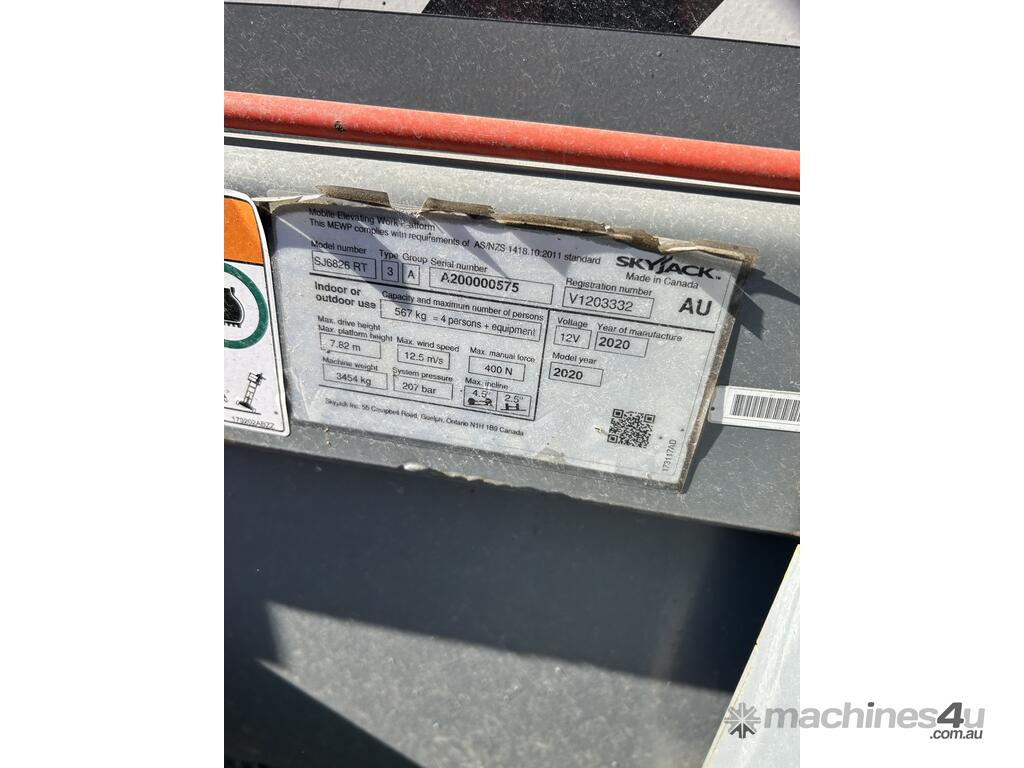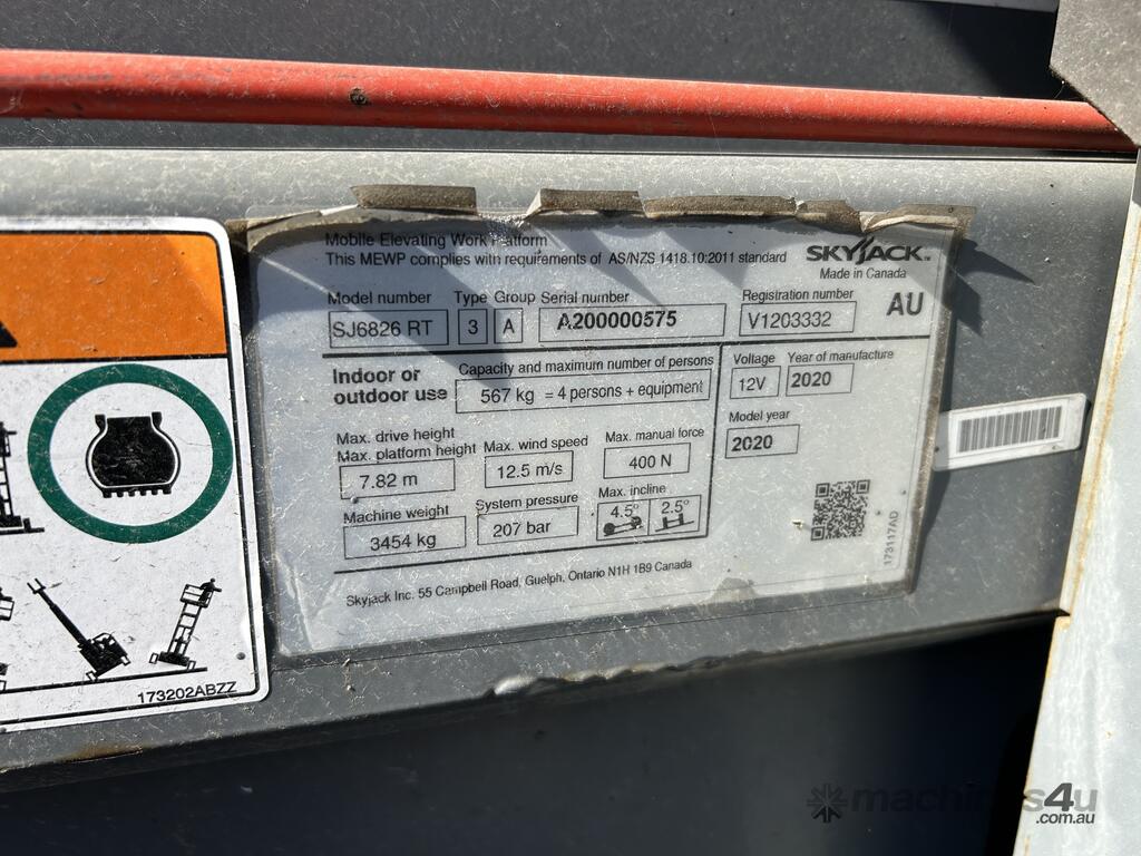 2020 Skyjack SJ-6826RT Scissor Lift :      $23,000 AUD($25,300 Inc. GST)