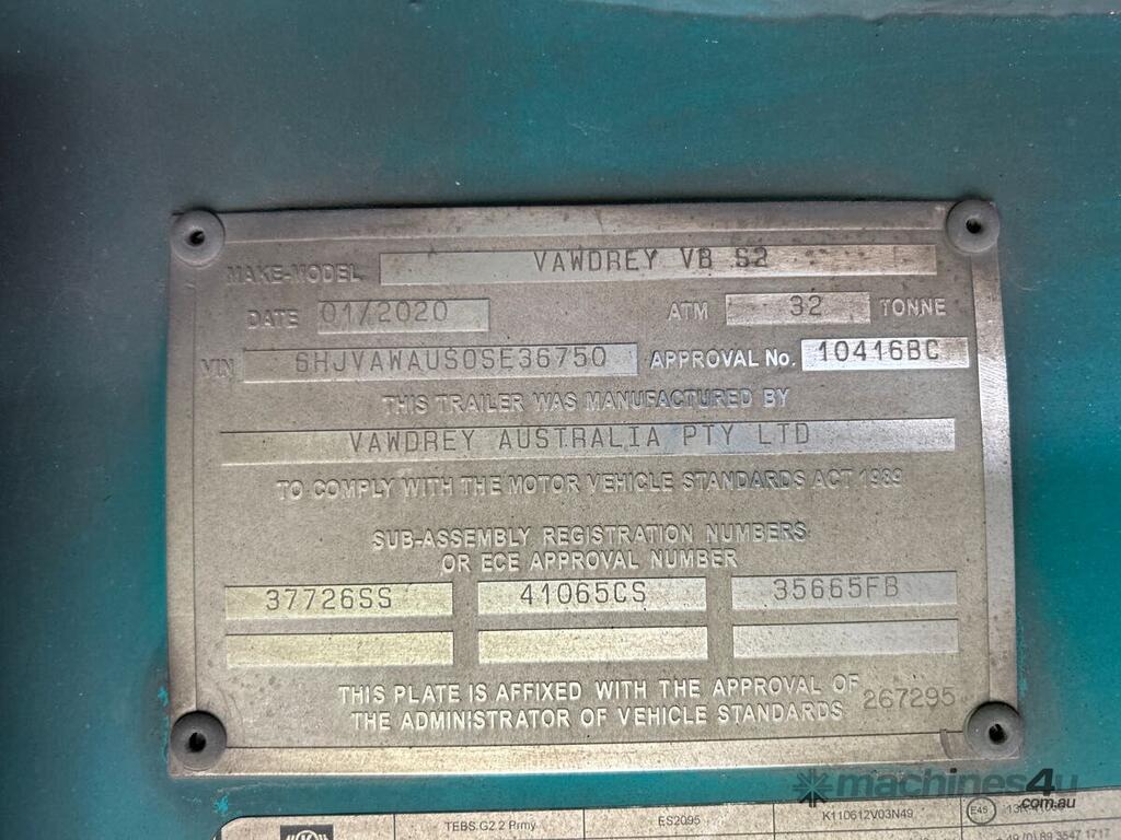 CP: 01/2020,Vawdrey,VBS2,32 Ft,Tandem Axle Refrigerated Pantech,Hubometer not visible,Colour: White,Rego. No: NP(YS21BS), Unregistered NAT,VIN: 6HJVAWAUS0SE36750,Sold with No Plates