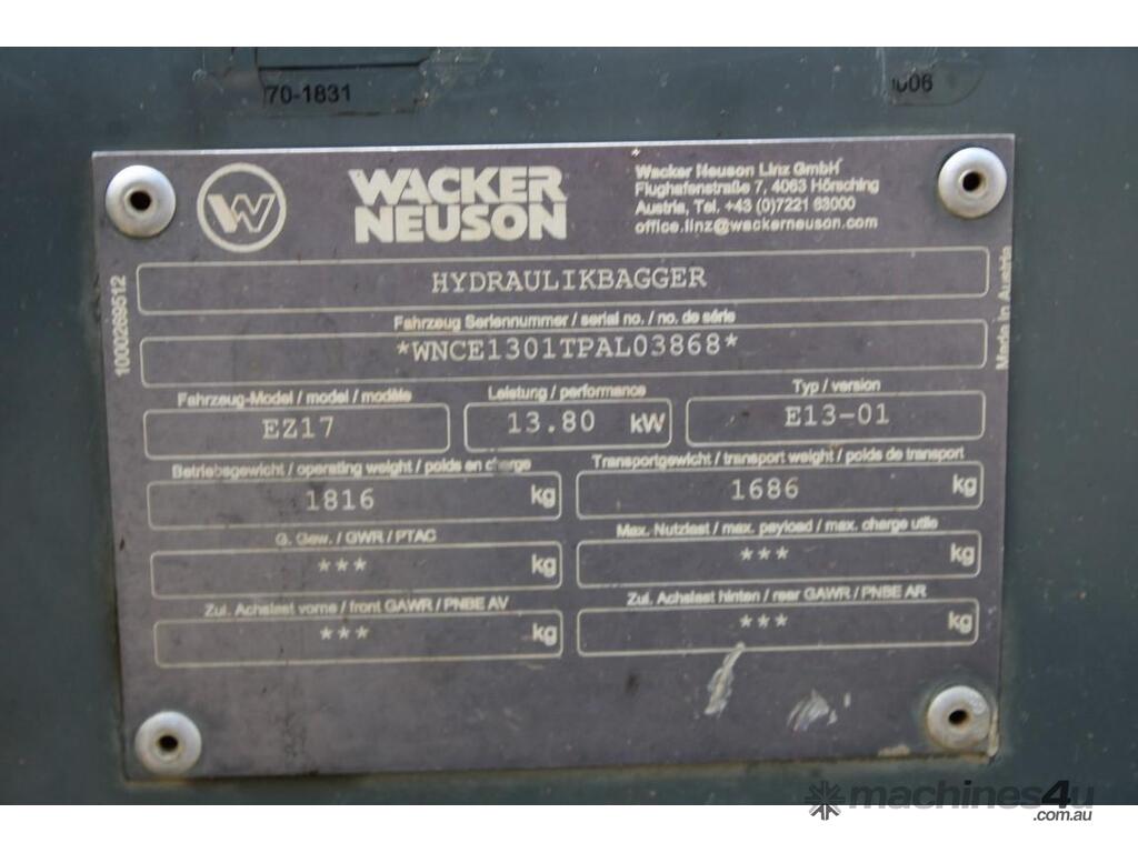 2020 Wacker Neuson EZ17 :      $29,000 AUD($31,900 Inc. GST)
