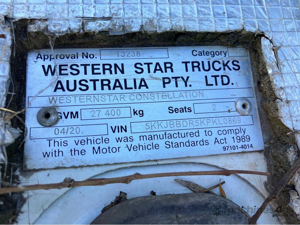 CP: 04/2020,Western Star,Constellation,Prime Mover,Airbag Suspension ,Detroit,6 Cyl,Diesel,Odometer not visible,Hourmeter not visible,Colour: White,Rego. No: NP(XB98SJ), Unregistered NAT,VIN: 5KKJBBDR5KPKL0869,Length: 7.6 m,GVM: 27400,Sold with No Plates,WOVR Status: WOVR N/A,Incident Type: Impact