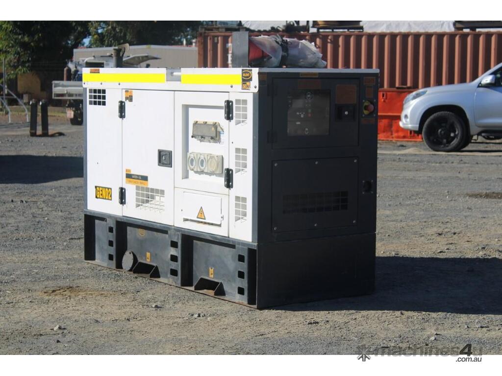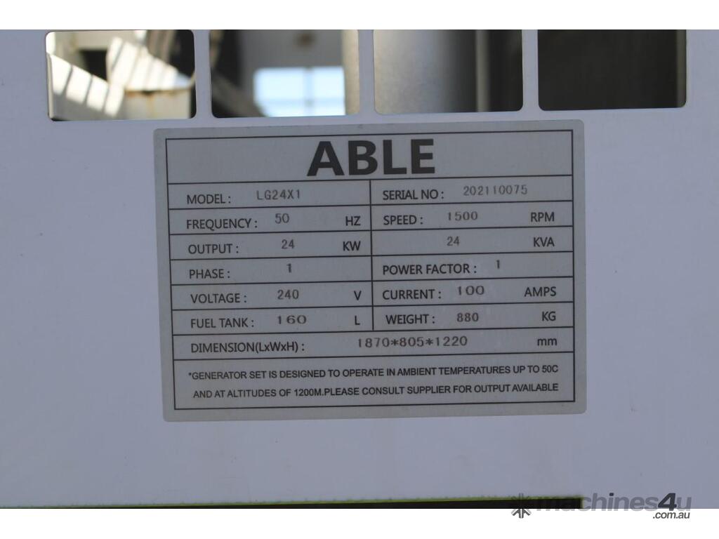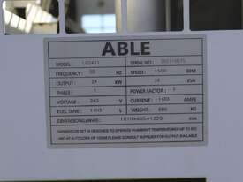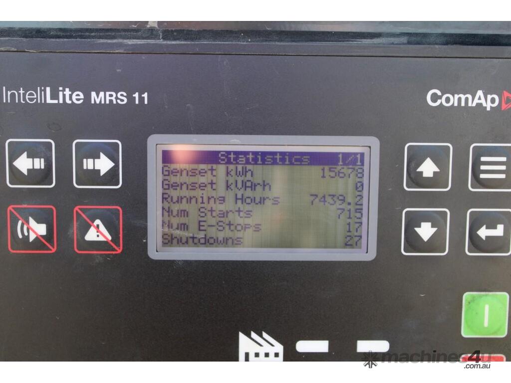 2021 Model, 7439 Hours Showing, 24KVA, Single Phase, 240 Volts, 15AMP Outlets, Water Cooled, Isolator and E-Stop.