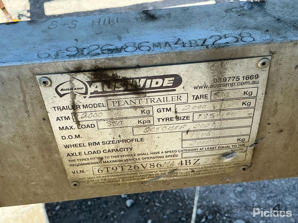 CP: CIRCA 2021,Built: 10/2021,Auswide Equipment,Plant Trailer,Dual Axle Trailer,Hubometer not visible,Colour: Silver,Unregistered VIC,VIN: 6T9T26V86MA4BZ258,Sold with No Plates