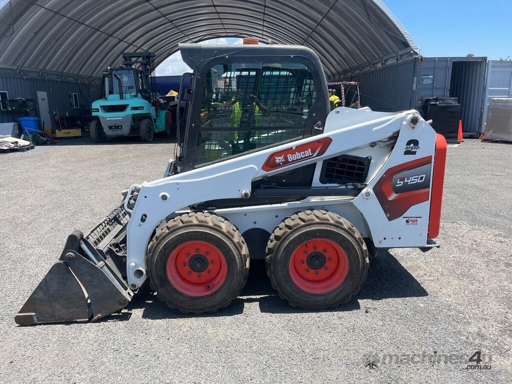 CP: CIRCA 2021,Bobcat,S450,Wheeled Skid Steer,4 Cyl,Diesel,Odometer not visible,111 (Hrs. Showing on Hour meter),Colour: White,Rego. No: NP(95887C), Unregistered QLD,Serial No: BCTB1EDGCMD014052,Sold with No Plates,Key No: 43