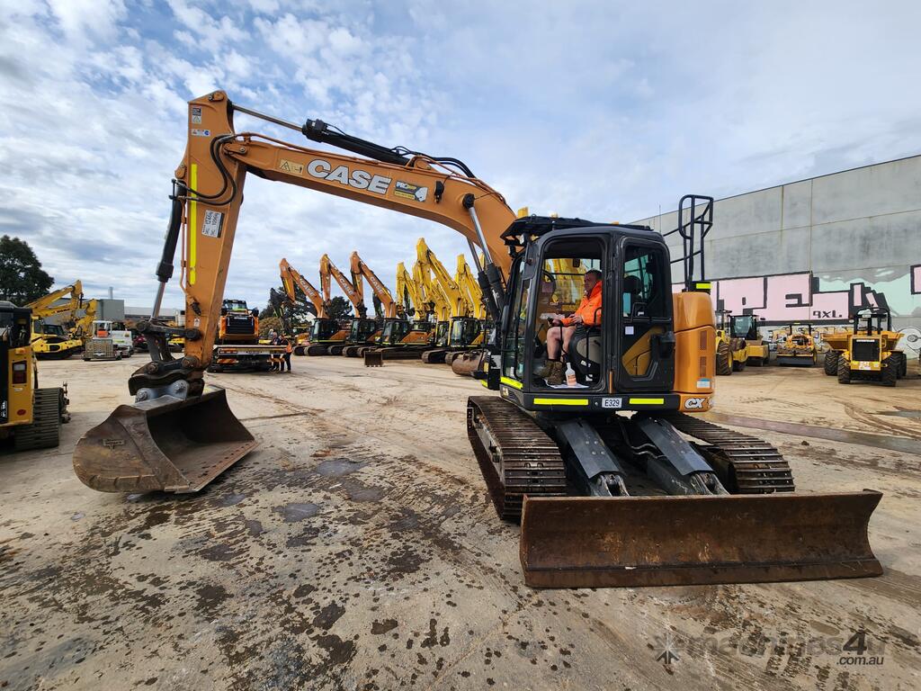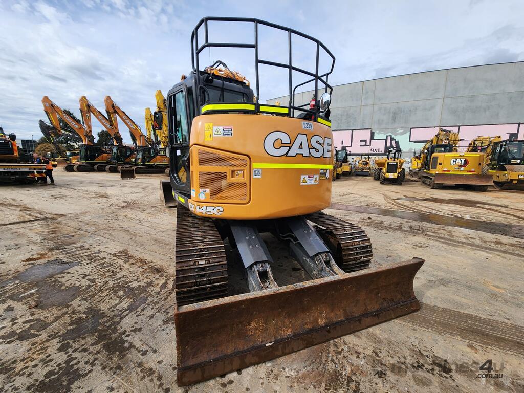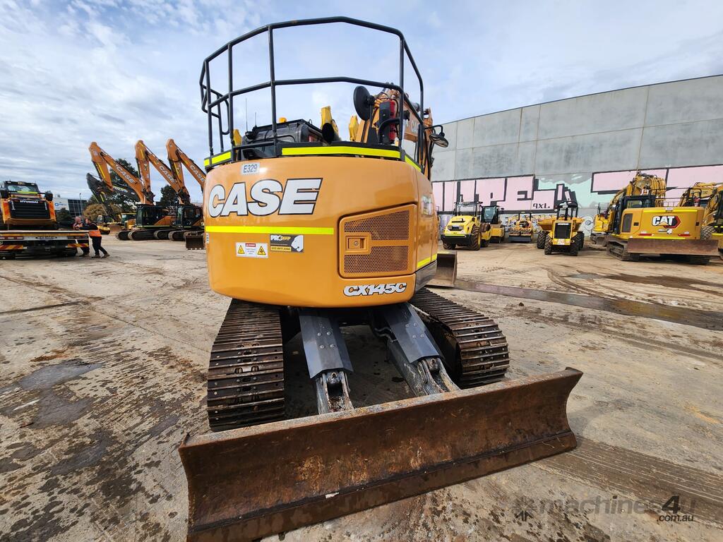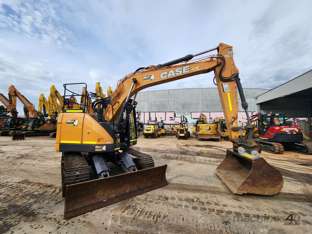 USED 2021 CASE CX145C CURRENT MODEL 15T EXCAVATOR (E329) WITH REDUCED RADIUS TAIL, LOW 3360 HOURS, DOZER BLADE, STEEL TRACKS, HYDRAULIC HITCH, FULL A/C CABIN WITH ROPS, TWO WAY FLOW AUXILIARY HYDRAULICS, REAR VIEW CAMERA, SAFETY HANDRAILS, CHECK VALVES, UHF RADIO, E-STOPS, FULL CIVIL SPEC, GP AND MUD BUCKET.