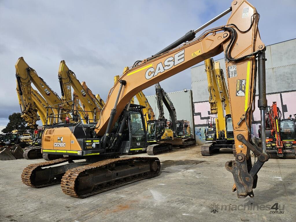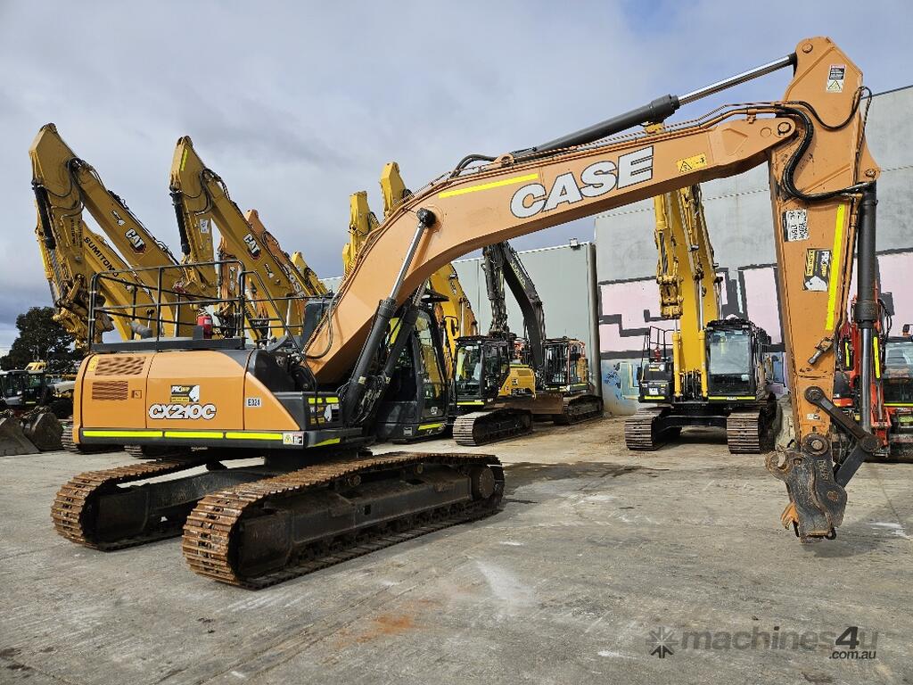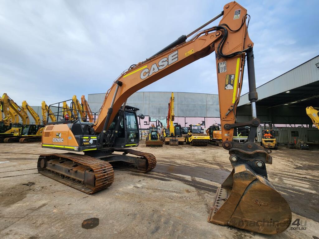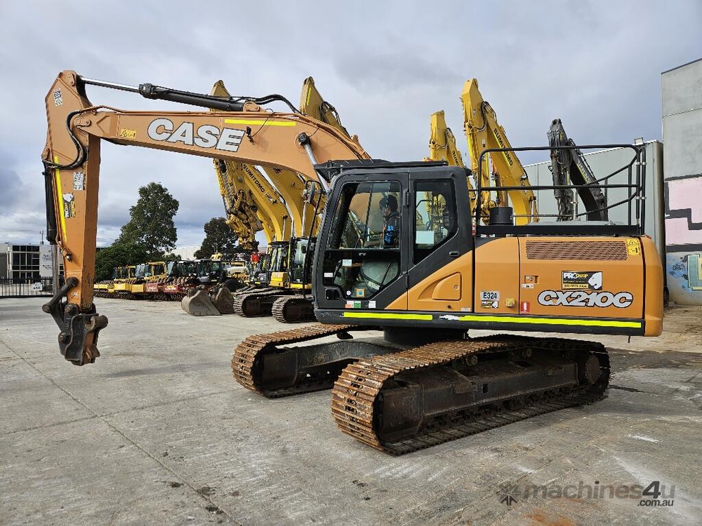 USED 2021 CASE CX210C CURRENT MODEL 21T EXCAVATOR (E324) WITH 4950 HRS, STEEL TRACKS, HYDRAULIC HITCH, FULL A/C CABIN WITH ROPS, TWO WAY FLOW AUXILIARY HYDRAULICS, REAR VIEW CAMERA, SAFETY HANDRAILS, CHECK VALVES, UHF RADIO, GP AND MUD BUCKETS, FULL TIER ONE CIVIL SPEC AND WARRANTY. VERY CLEAN UNIT WITH FULL SERVICE HISTORY AVAILABLE.