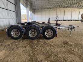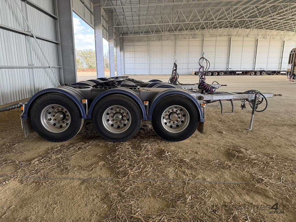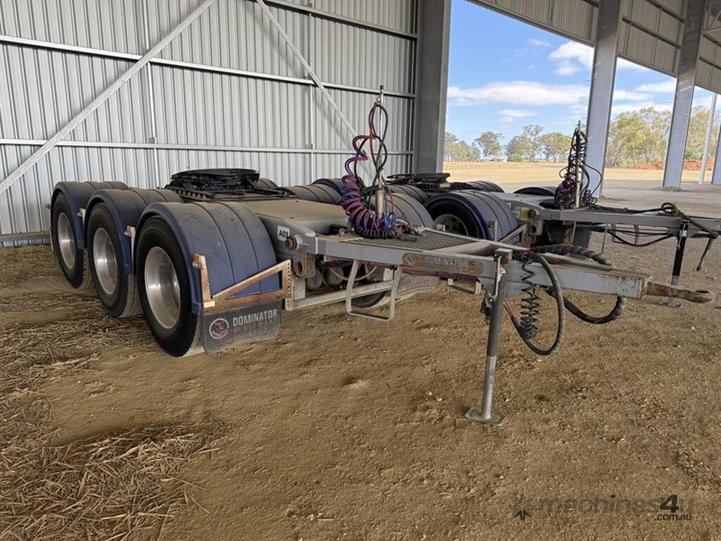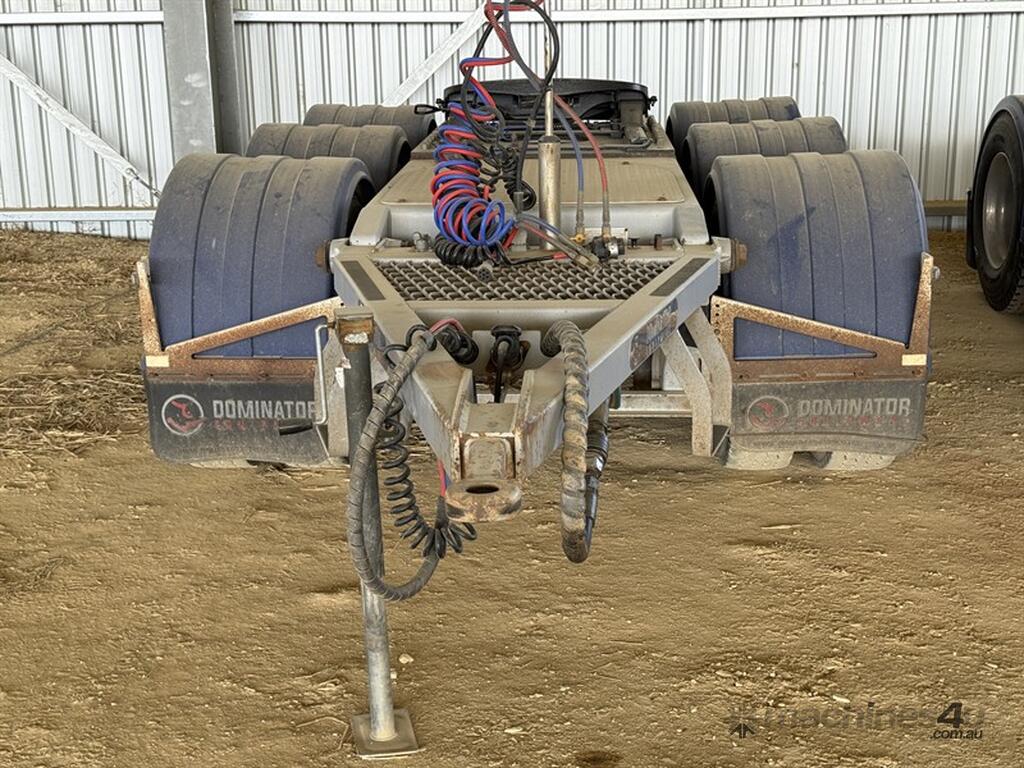 2021 DOMINATOR TRI DOLLY. VIN 6T9T23R12MADY9001. Front and rear hook up. Dual draw bar position. Telfon top Holland greasless turntable, with air slide adjustment. Right weigh digital scales. Yard release button. Air suspension height adjustment valve. ABS wiring plug. Wind up dolly pull leg. Data track hub metre. Draw bar length 2.30 metres. Pin to pin measures 4.45 metres. Turntable pin to rear measures 1.7 metres. Located Quandialla, NSW