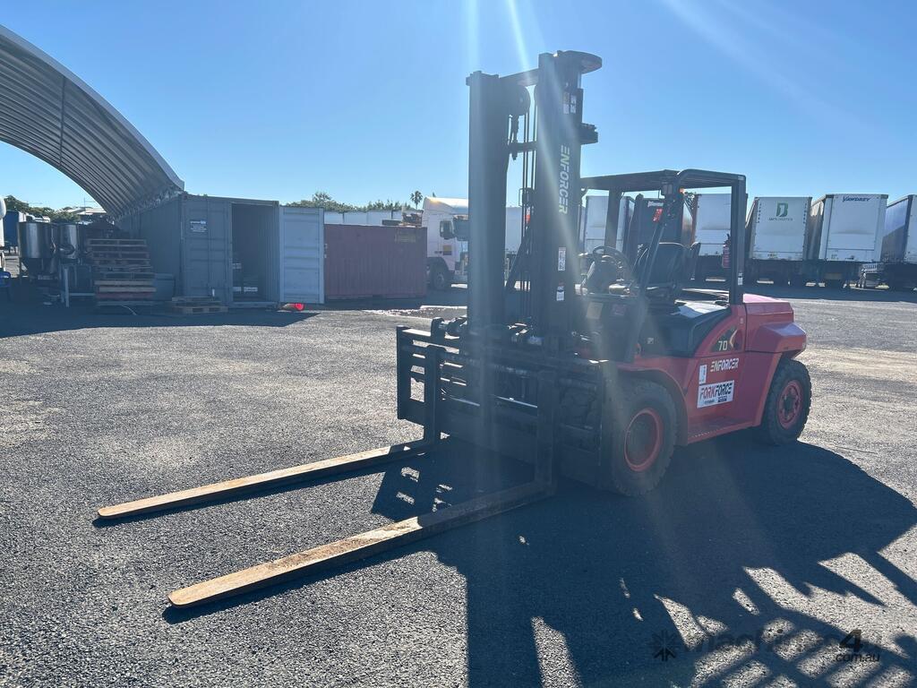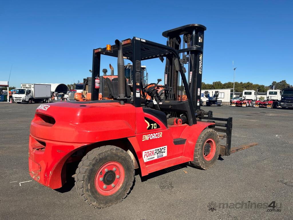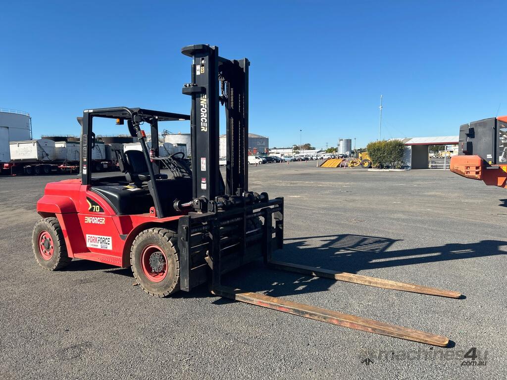 CP: CIRCA 2021,Enforcer,Forklift,Diesel,Odometer not visible,600 (Hrs. Showing on Hour meter),Colour: Red,Unregistered,Serial No: M6BA02577,Sold with No Plates,Key No: 48