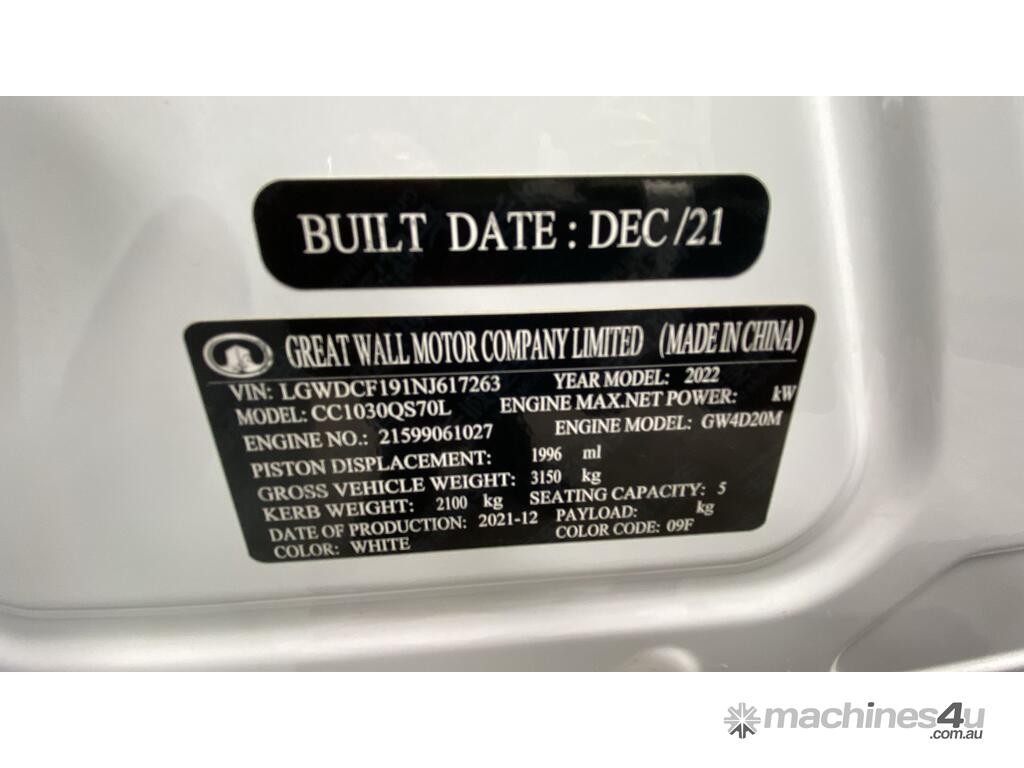 2021 Great Wall Cannon 4x4 4 Pick-Up 8sp Auto 2.0L 2000cc 4cyl T/Diesel 2020