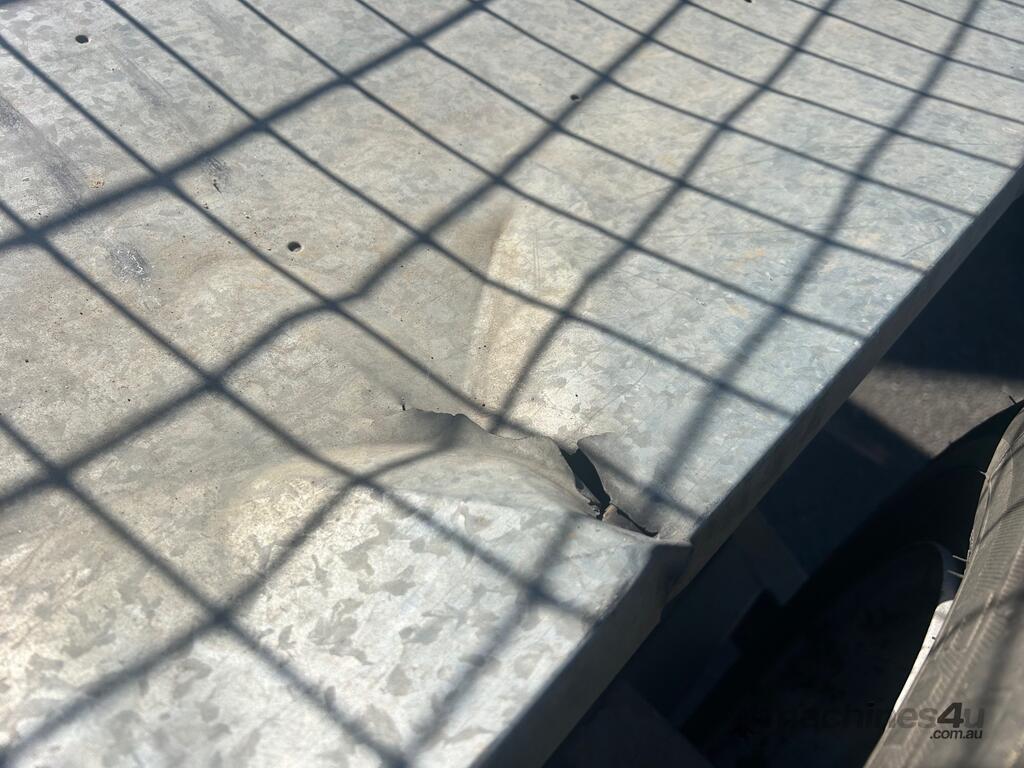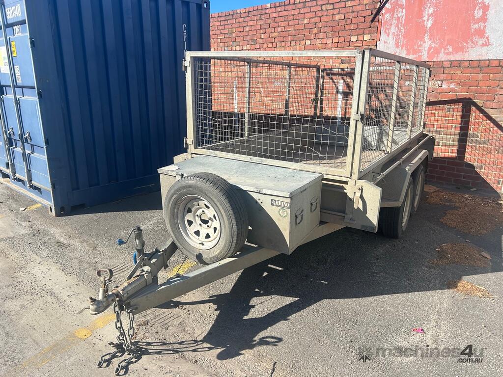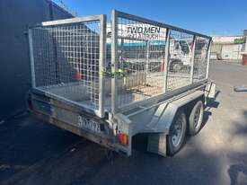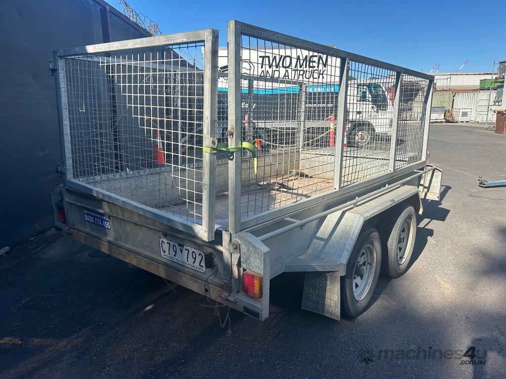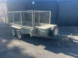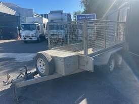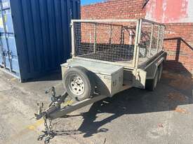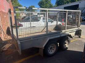 09/2021 Galvanised trailer P/L twin axle 10 x 5 box trailer, mesh cage, spare tyre, tool box (damaged tool box)